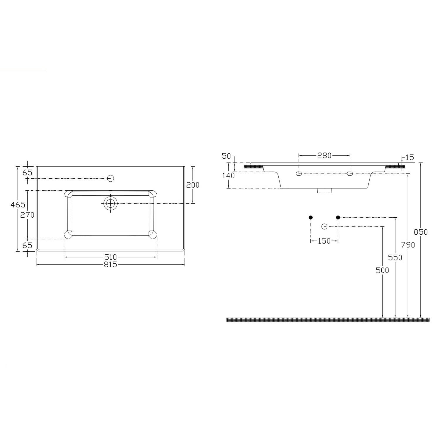 - Abmessungen: B: 81,5 T: 46,5 H: 14 cm
