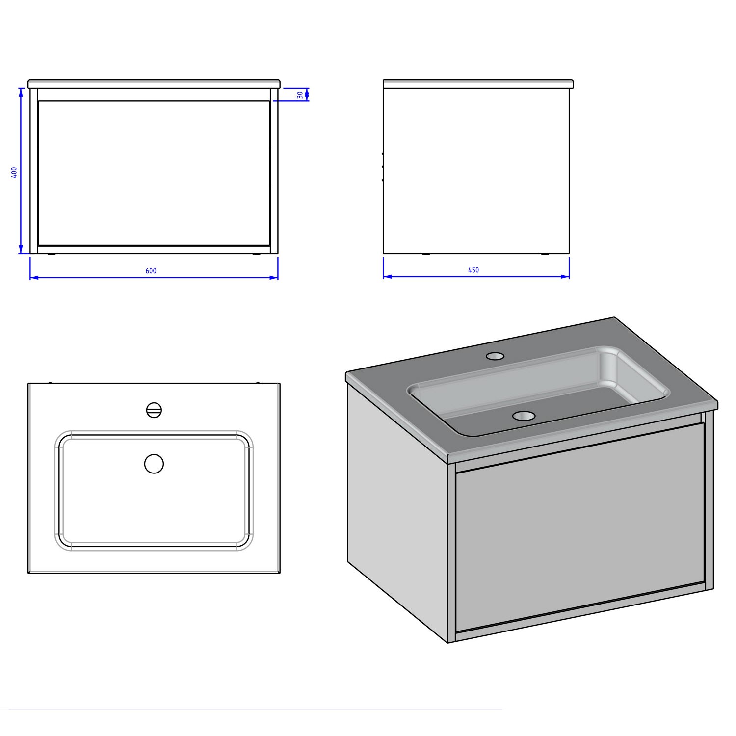 Loft Waschtisch mit Unterschrank 60 cm, 1 Auszug