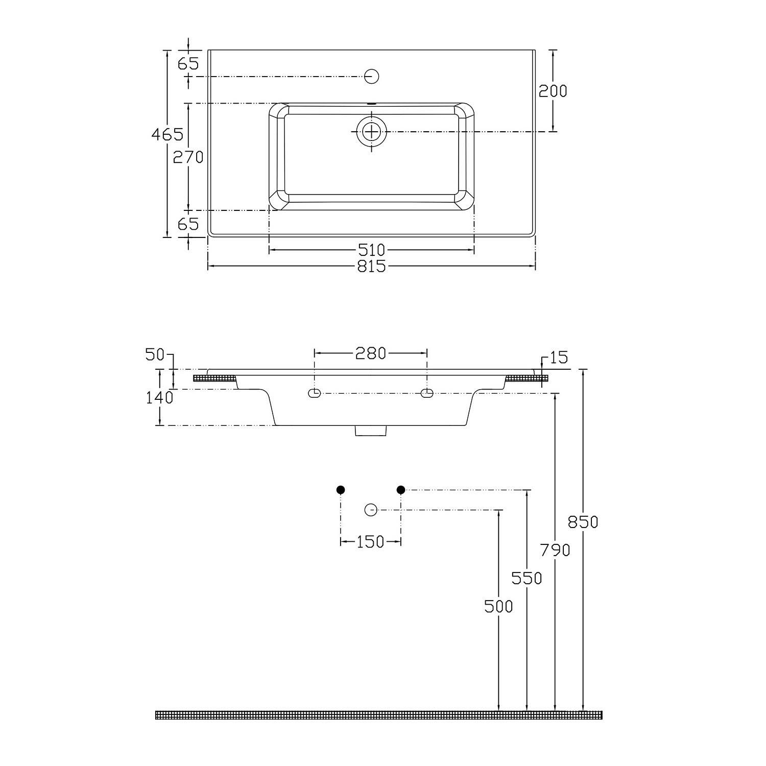 - Abmessungen: B: 81,5 T: 46,5 H: 14 cm