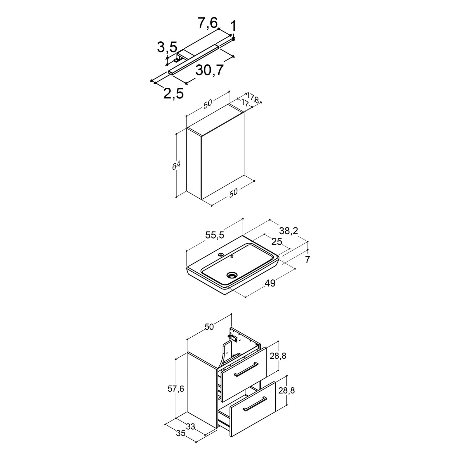 - B: 50 T: 35 H: 57,6 cm