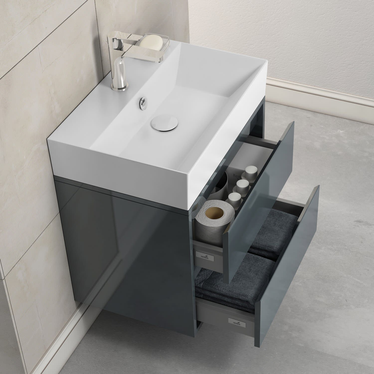 Pure 2.0 Waschtisch mit Unterschrank 60 cm mit 2 Auszügen