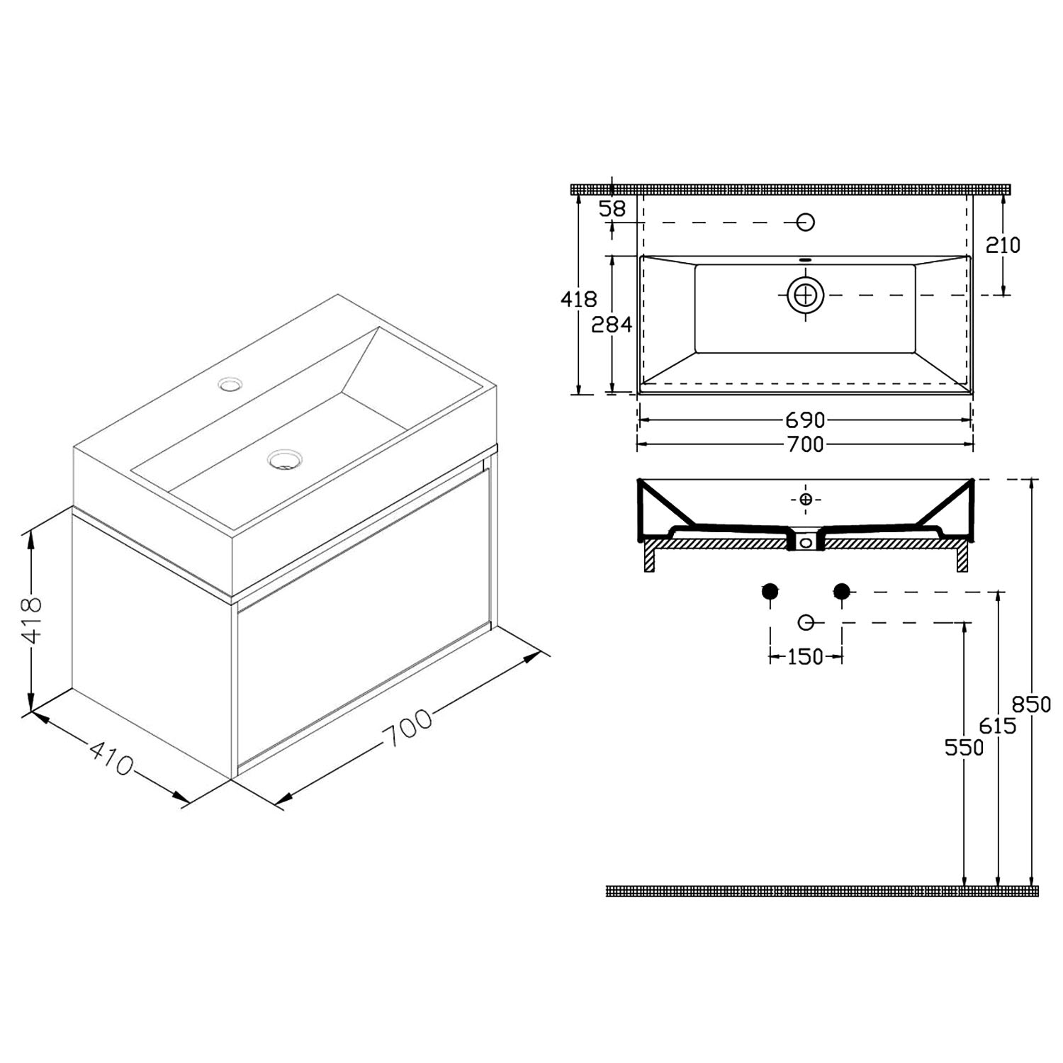 - Abmessungen: B: 70 T: 42,1 H: 13,5 cm