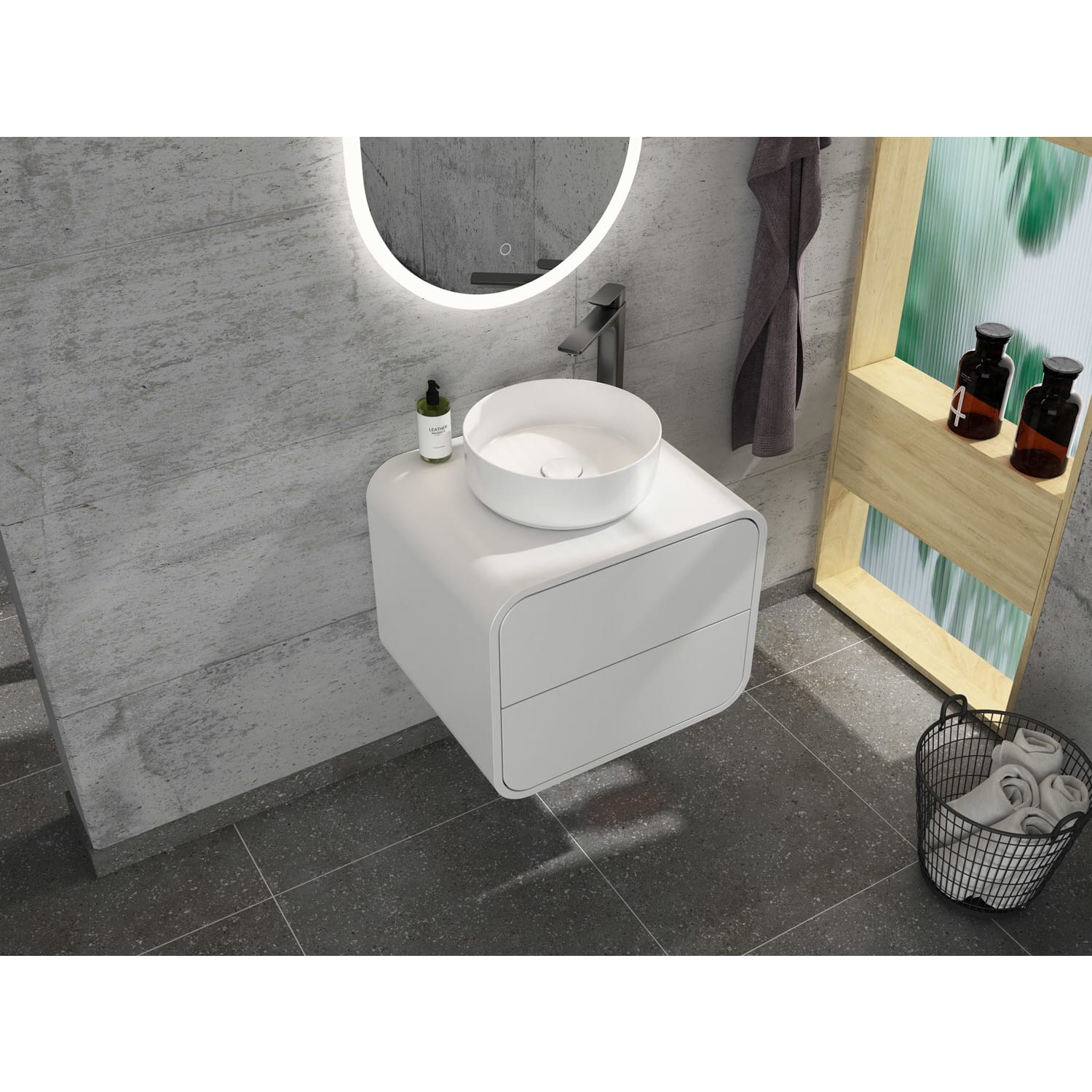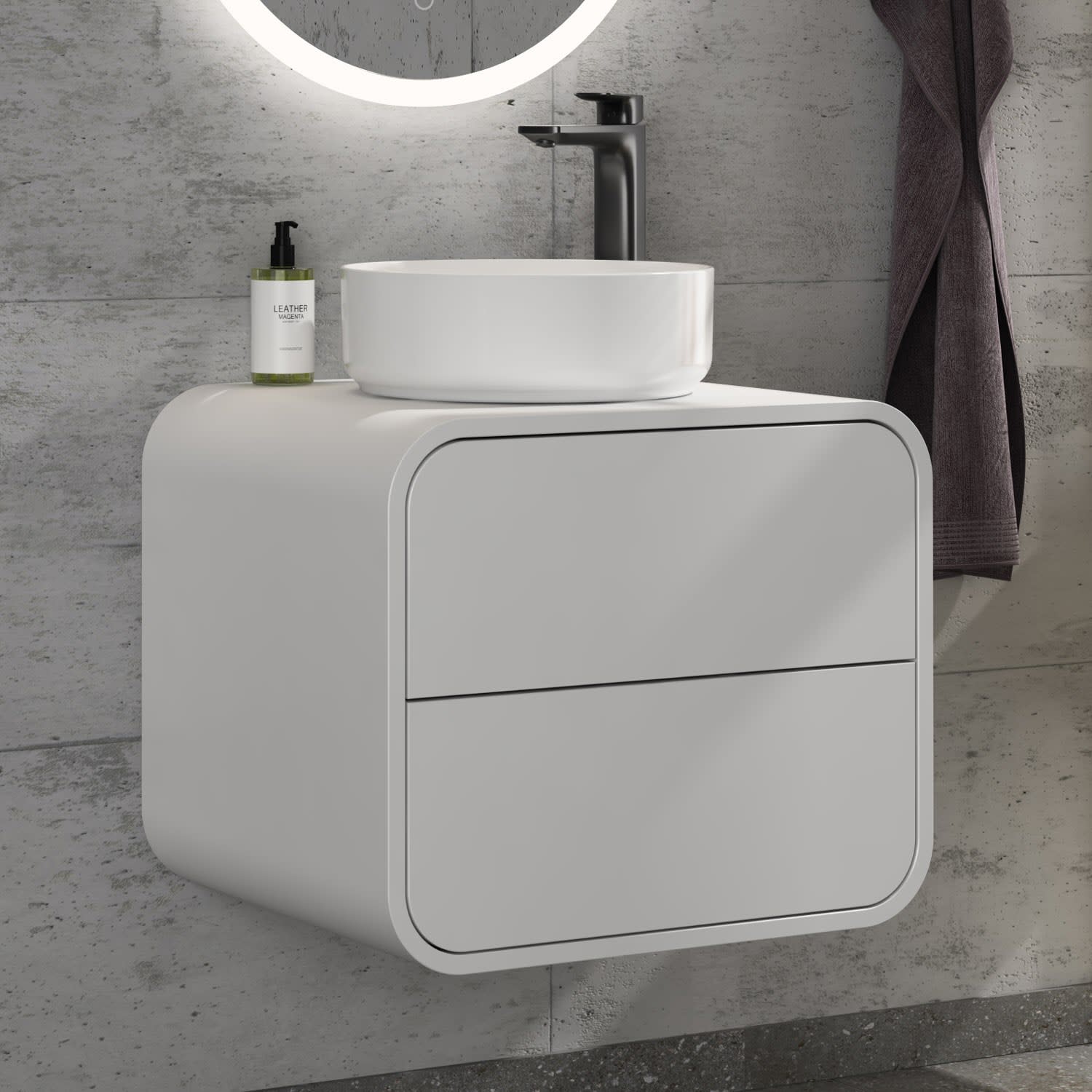 Endecken Sie unsere Serie "Pure Arc": zeitlos elegant mit abgerundeten Ecken und praktischen Features. Verleihen Sie Ihrem Badezimmer Stil und Funktionalität!