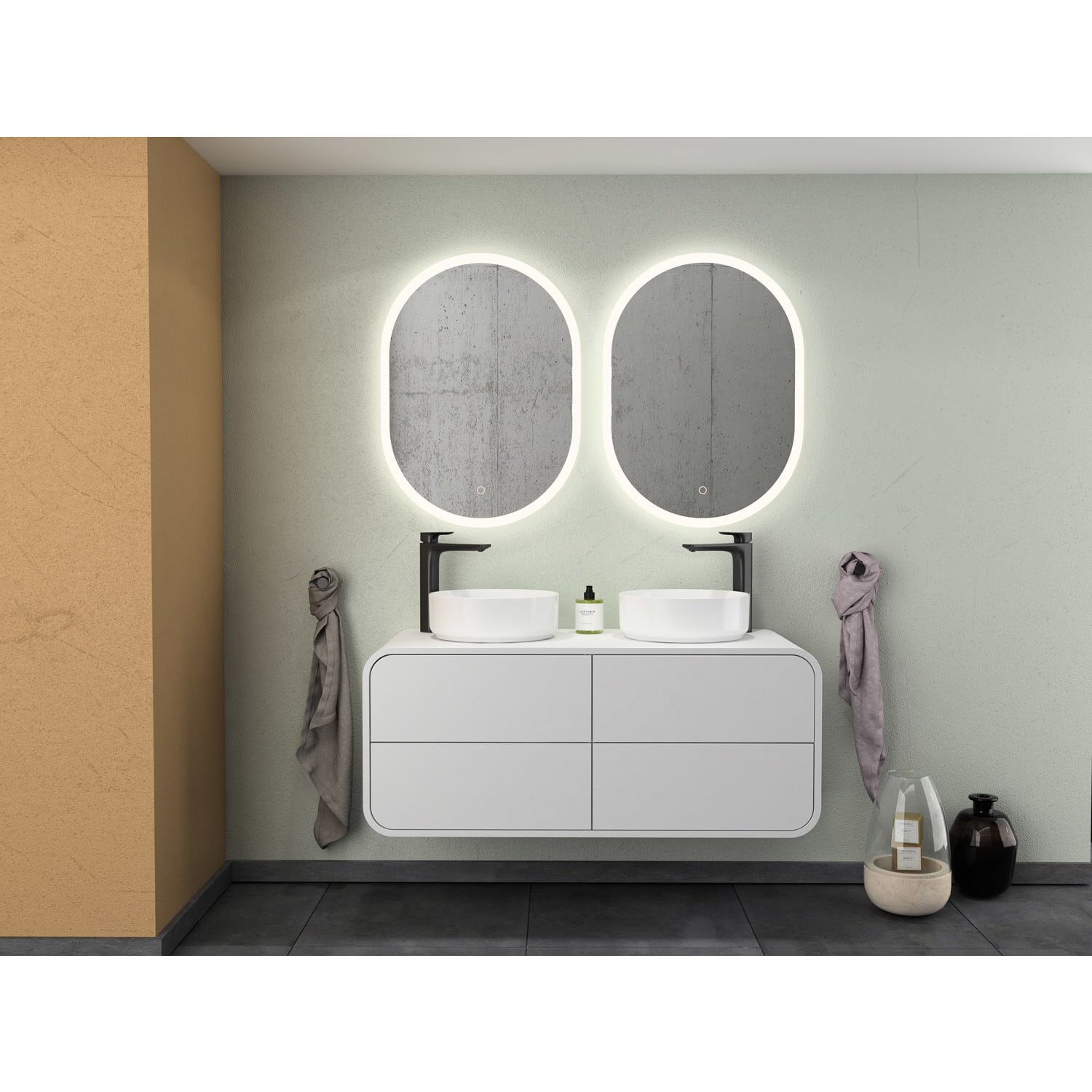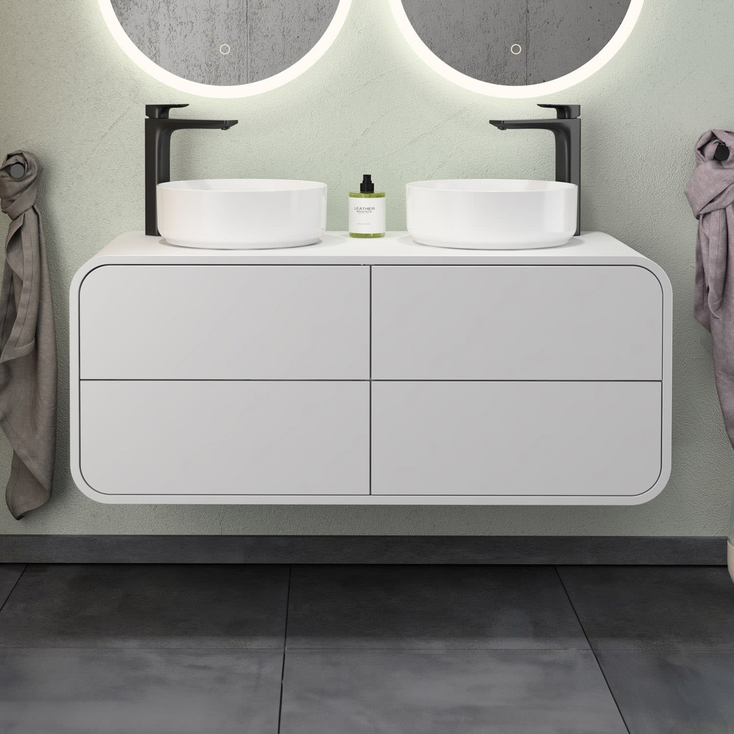 Endecken Sie unsere Serie "Pure Arc": zeitlos elegant mit abgerundeten Ecken und praktischen Features. Verleihen Sie Ihrem Badezimmer Stil und Funktionalität!