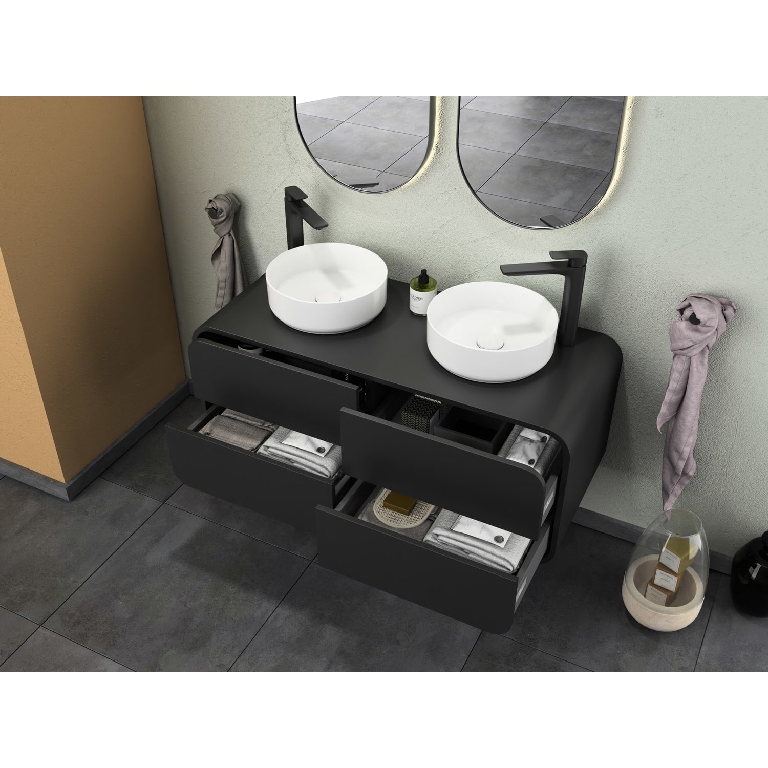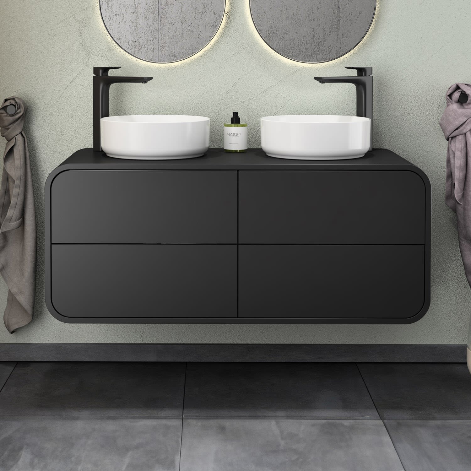 Endecken Sie unsere Serie "Pure Arc": zeitlos elegant mit abgerundeten Ecken und praktischen Features. Verleihen Sie Ihrem Badezimmer Stil und Funktionalität!