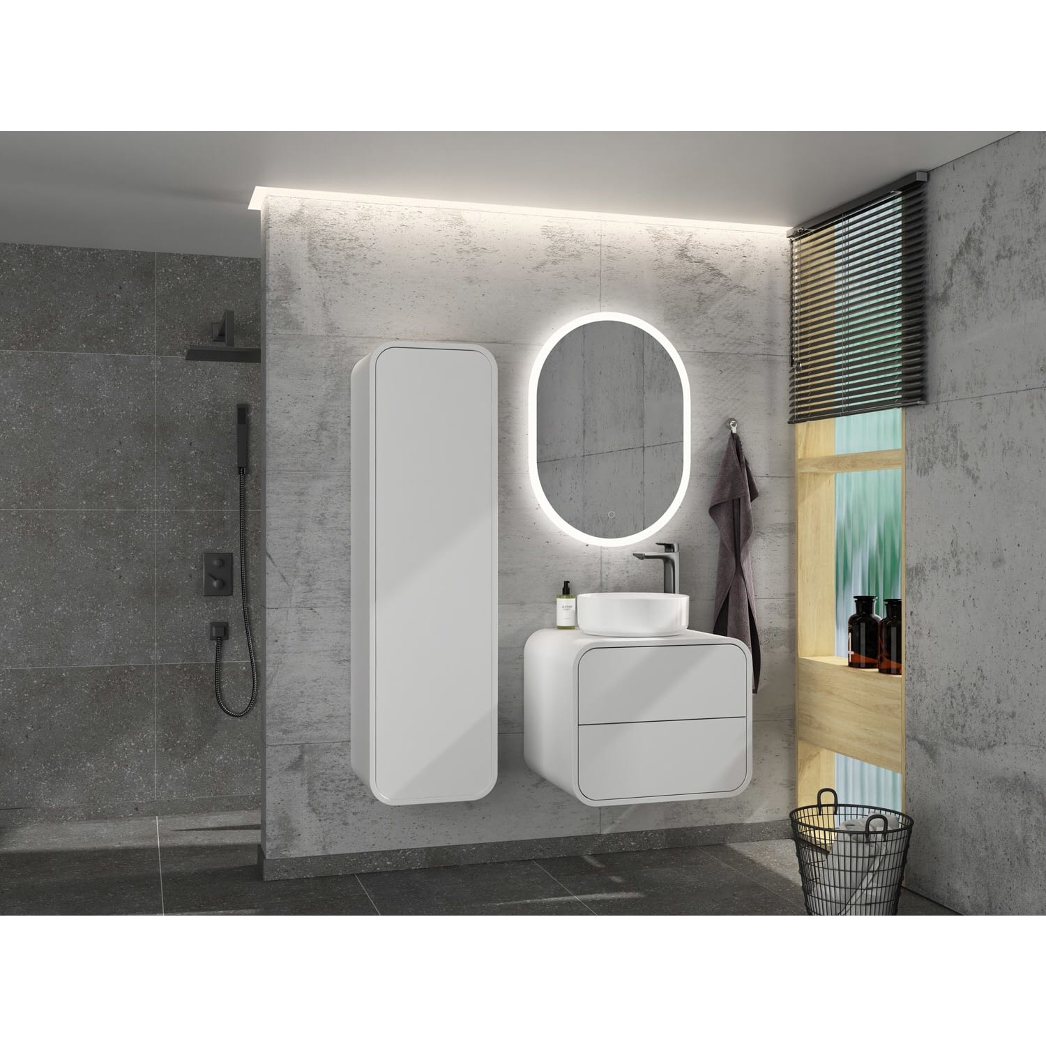Endecken Sie unsere Serie "Pure Arc": zeitlos elegant mit abgerundeten Ecken und praktischen Features. Verleihen Sie Ihrem Badezimmer Stil und Funktionalität!