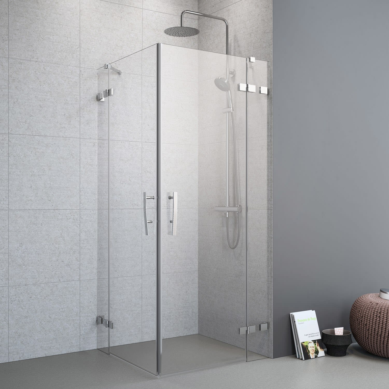 - Einbau auf Duschwanne (100 x 80 cm) oder bodengleich