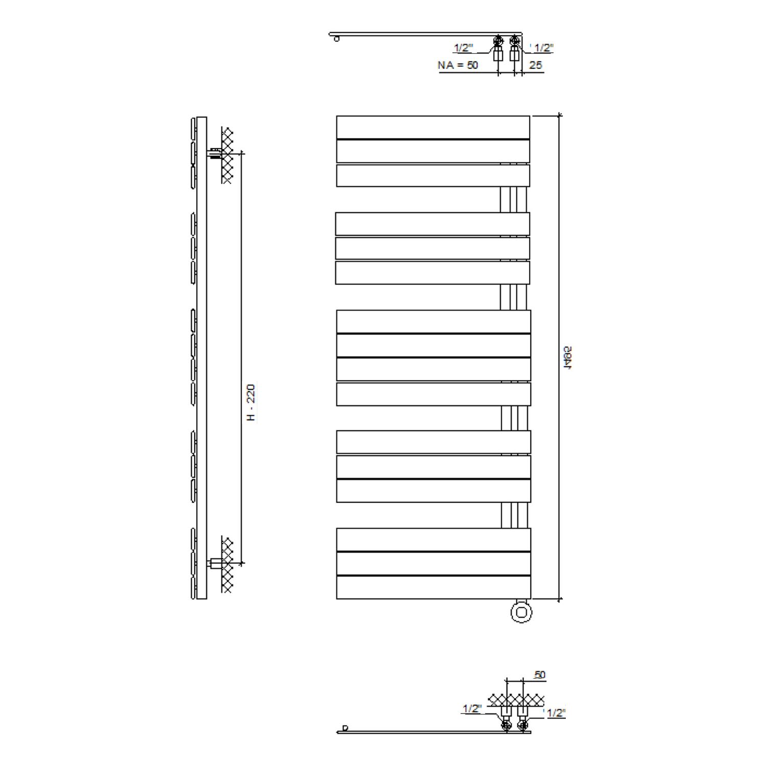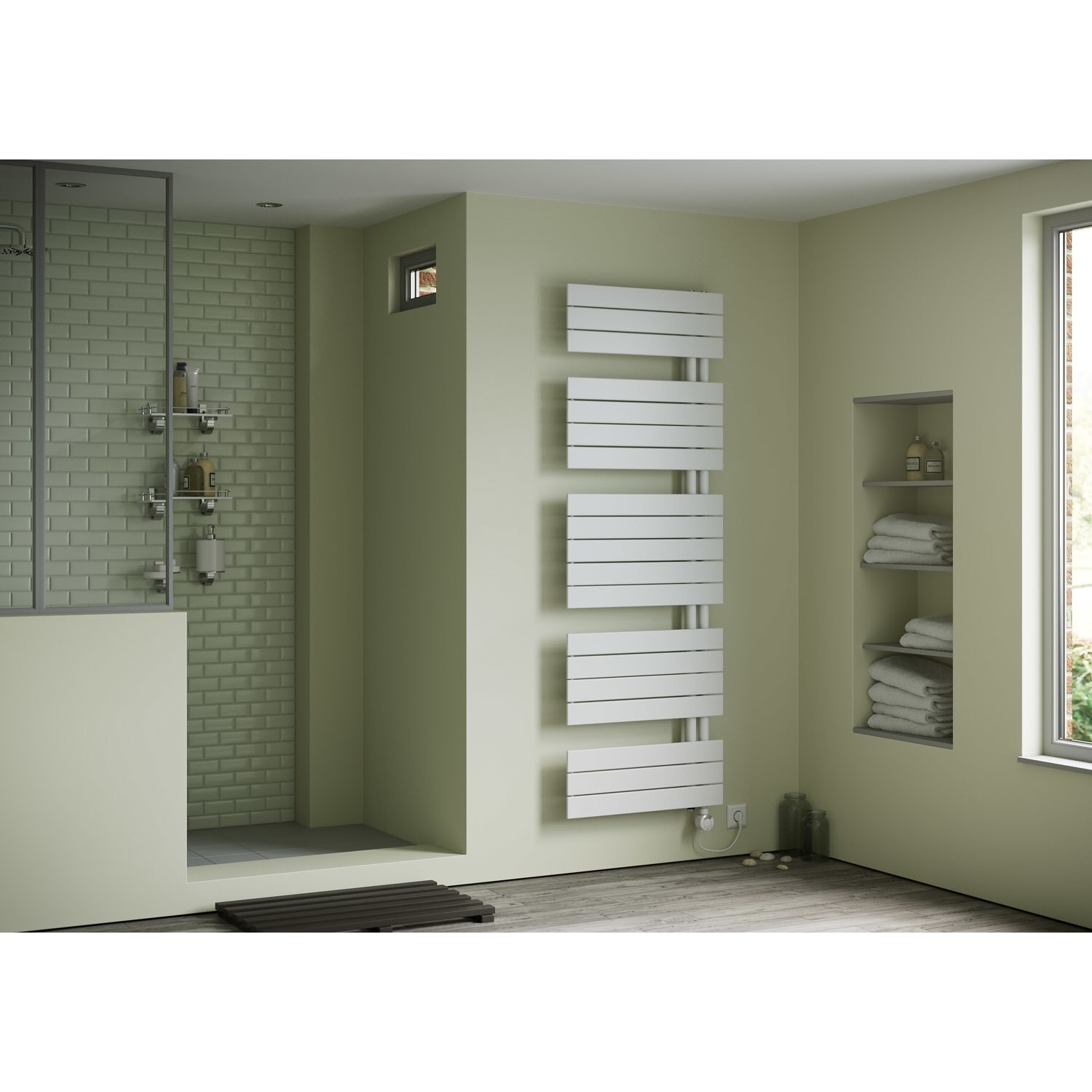 Plan Open E Badheizkörper 60 x 149,5 cm, rein elektrisch, Heizstab Typ 4, Öffnung links mit Fernbedienung