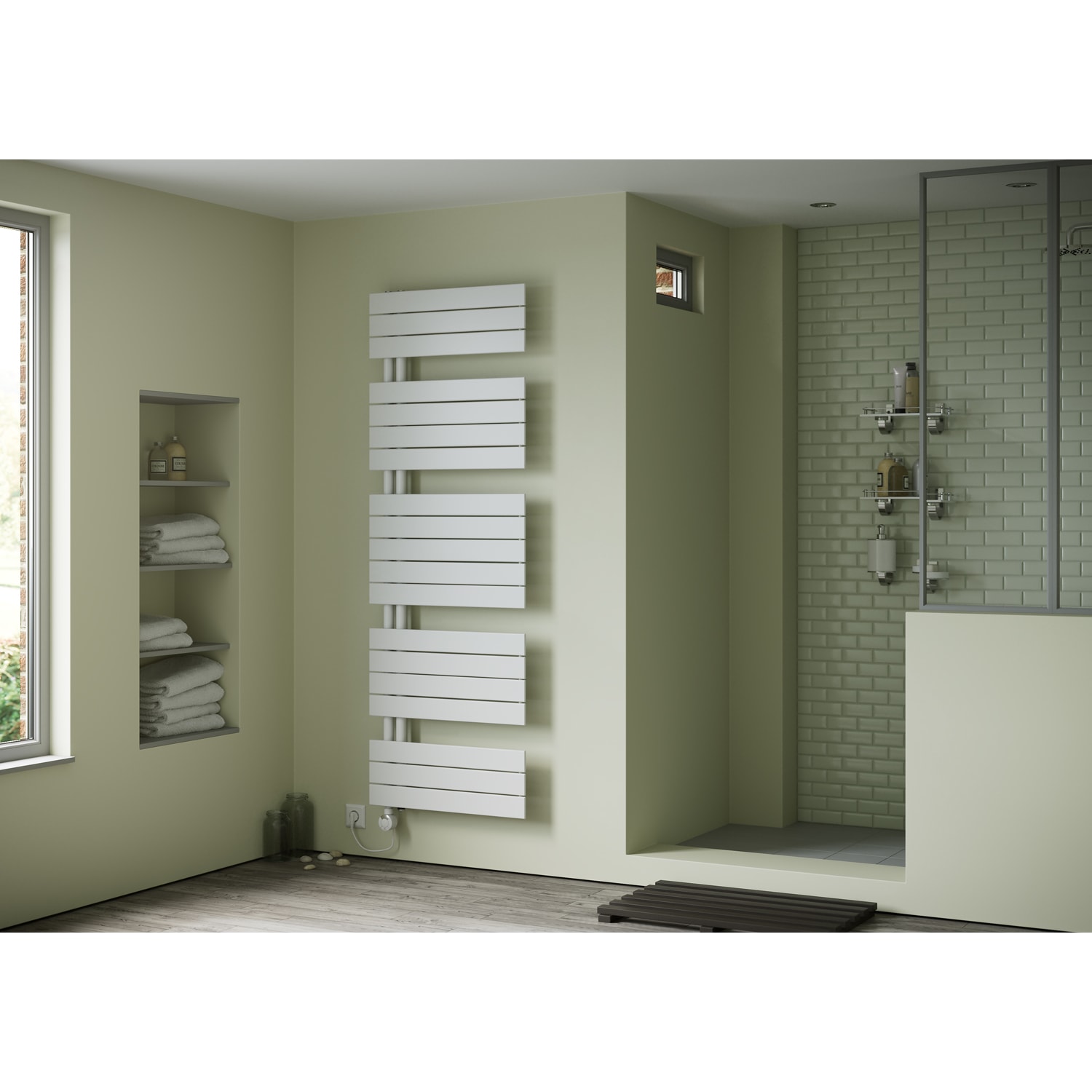 Plan Open E Badheizkörper 50 x 149,5 cm, rein elektrisch, Heizstab Typ 4, Öffnung rechts mit Fernbedienung
