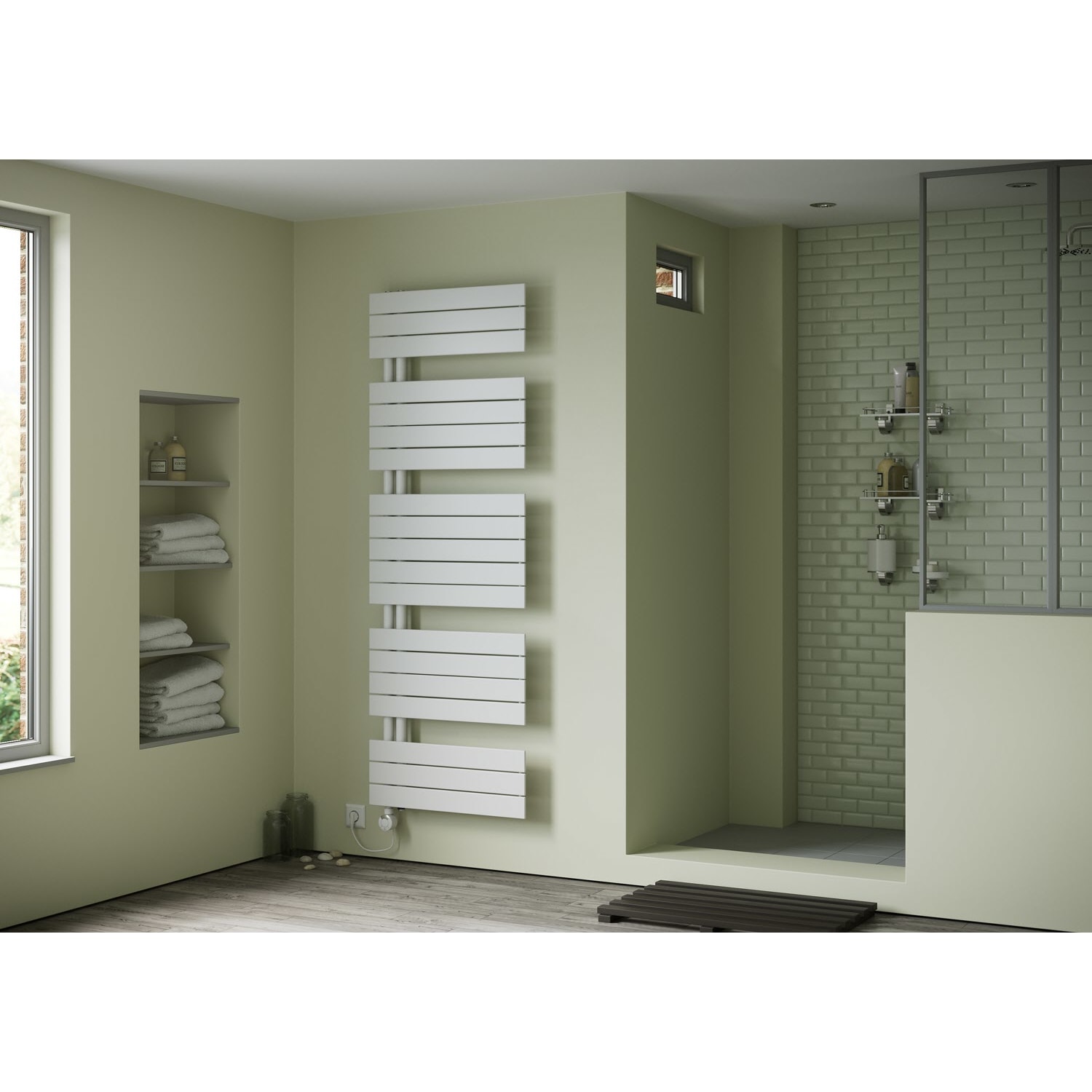 Plan Open E Badheizkörper 60 x 172 cm, rein elektrisch, Heizstab Typ 4, Öffnung rechts mit Fernbedienung