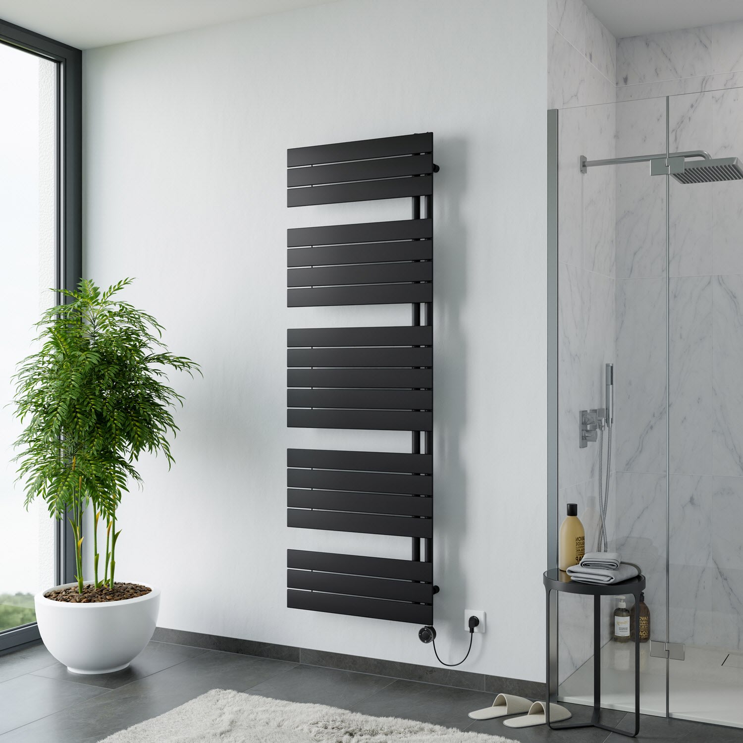 Plan Open E Badheizkörper 60 x 149,5 cm, rein elektrisch, Heizstab Typ 3, Öffnung links