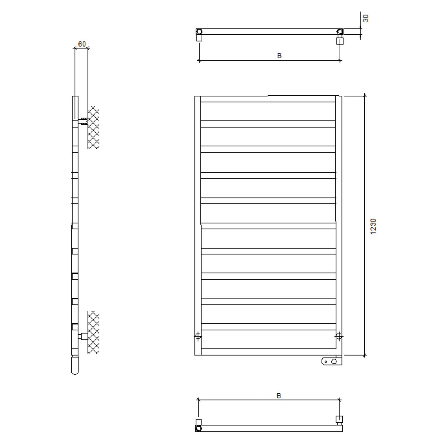 Quara E Badheizkörper 50 x 123 cm, rein elektrisch, Heizstab Typ 3 rechts