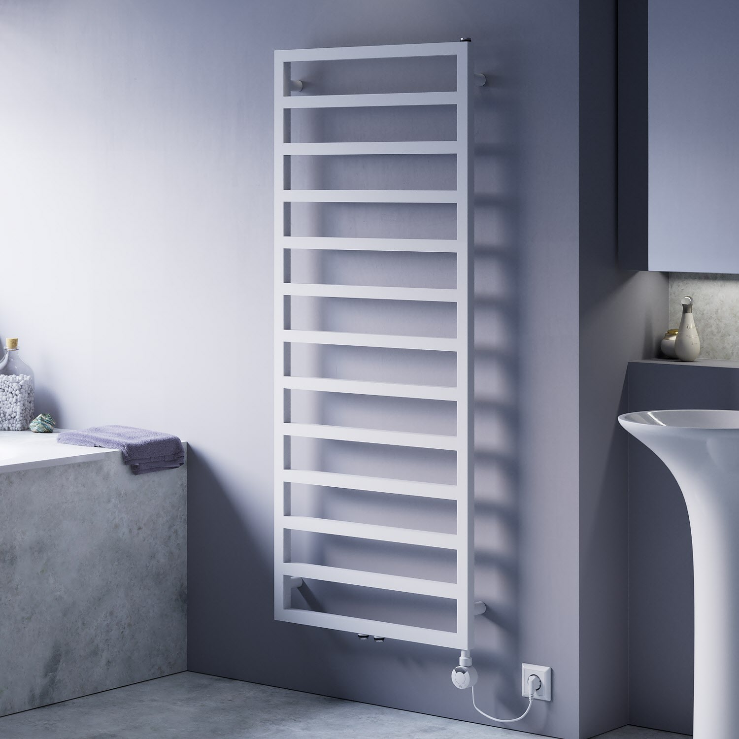 Quara E Badheizkörper 50 x 123 cm, rein elektrisch, Heizstab Typ 4 rechts mit Fernbedienung