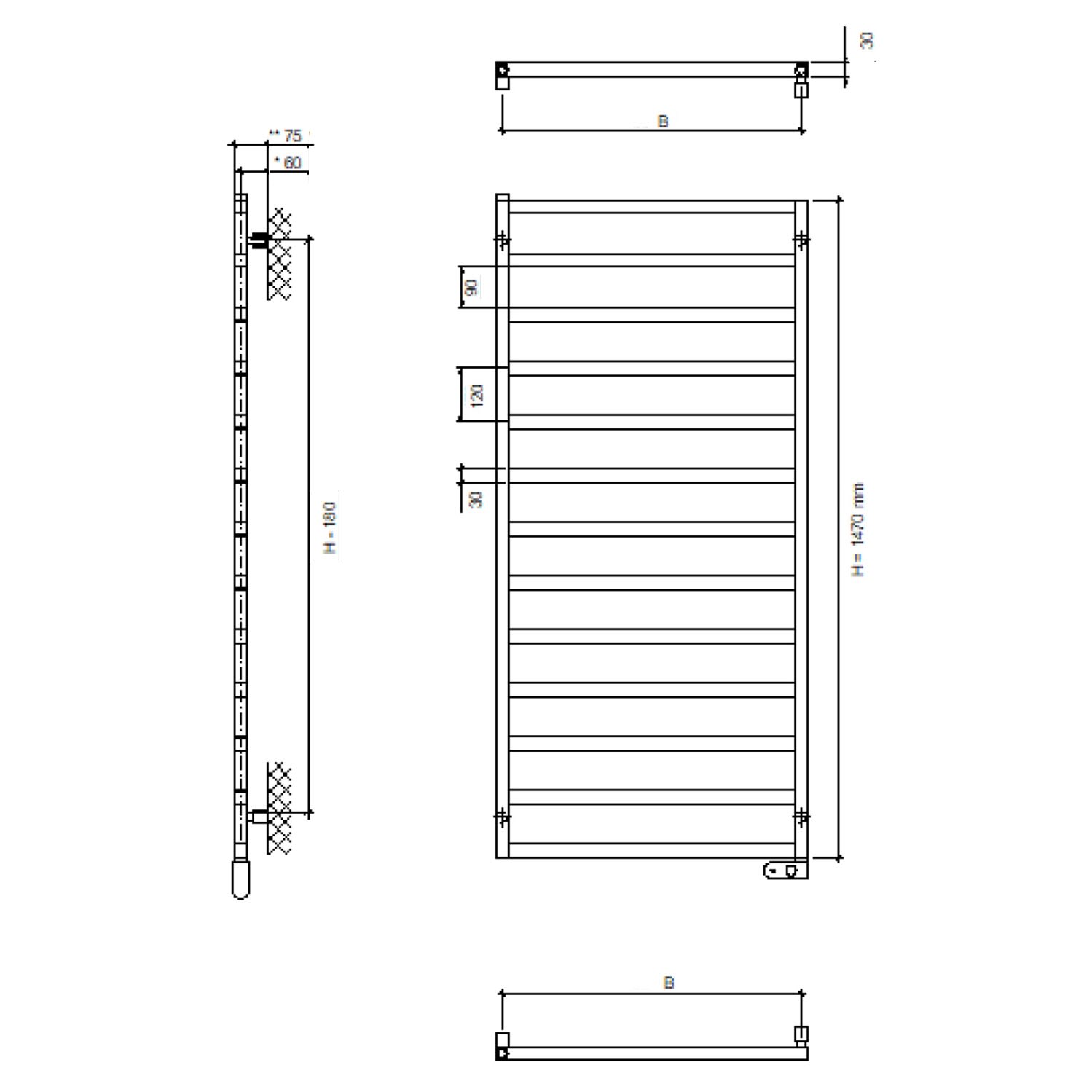 Quara E Badheizkörper 50 x 147 cm, rein elektrisch, Heizstab Typ 3 rechts