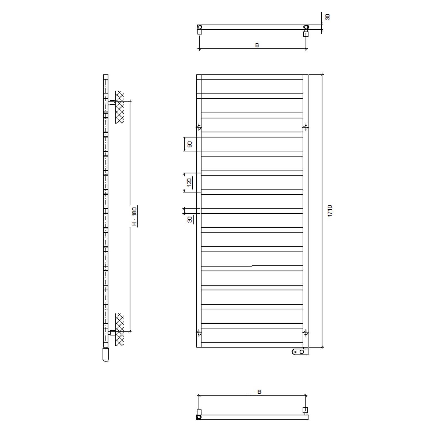 Quara E Badheizkörper 50 x 171 cm, rein elektrisch, Heizstab Typ 3 rechts