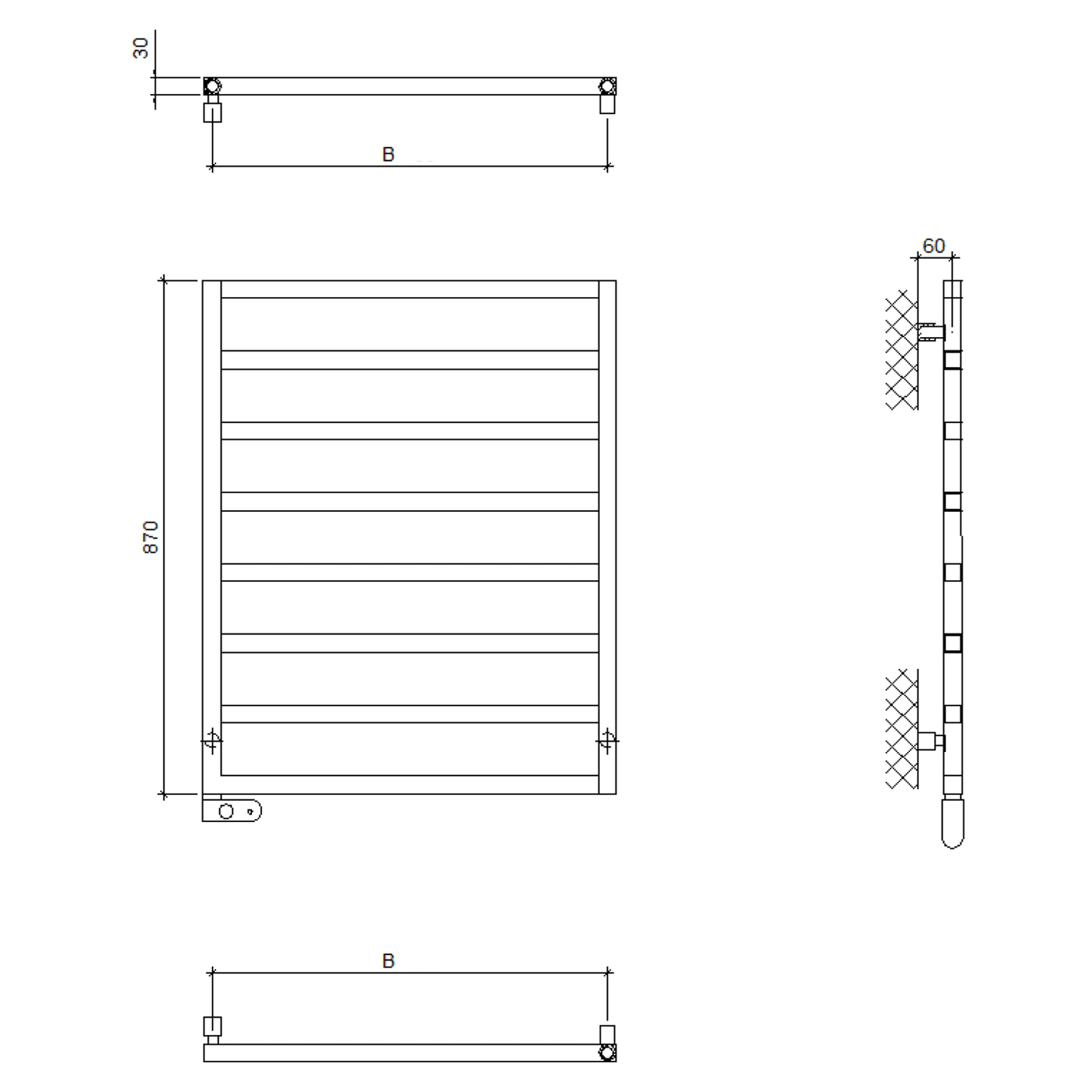 Quara E Badheizkörper 60 x 87 cm, rein elektrisch, Heizstab Typ 3 links