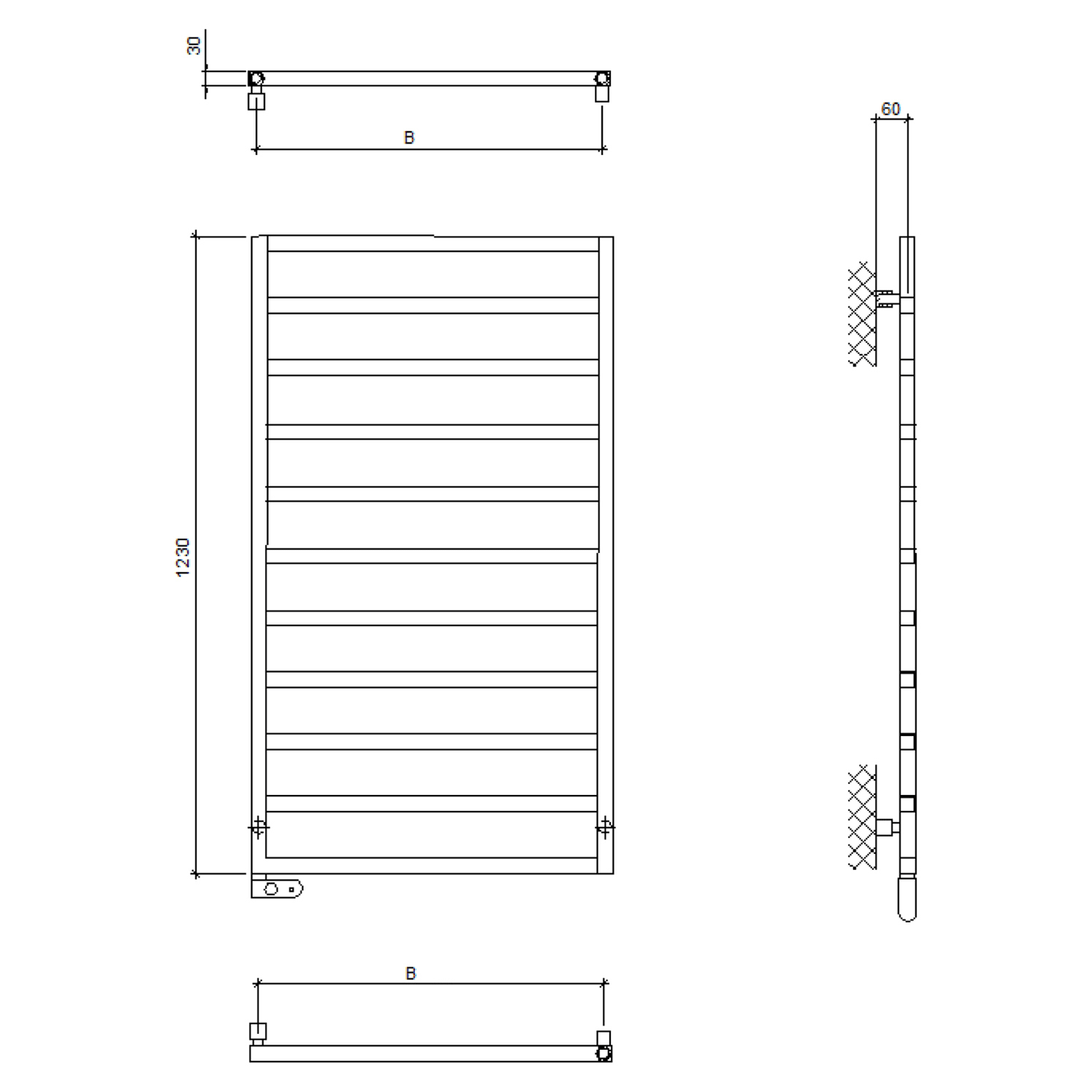 Quara E Badheizkörper 50 x 123 cm, rein elektrisch, Heizstab Typ 3 links