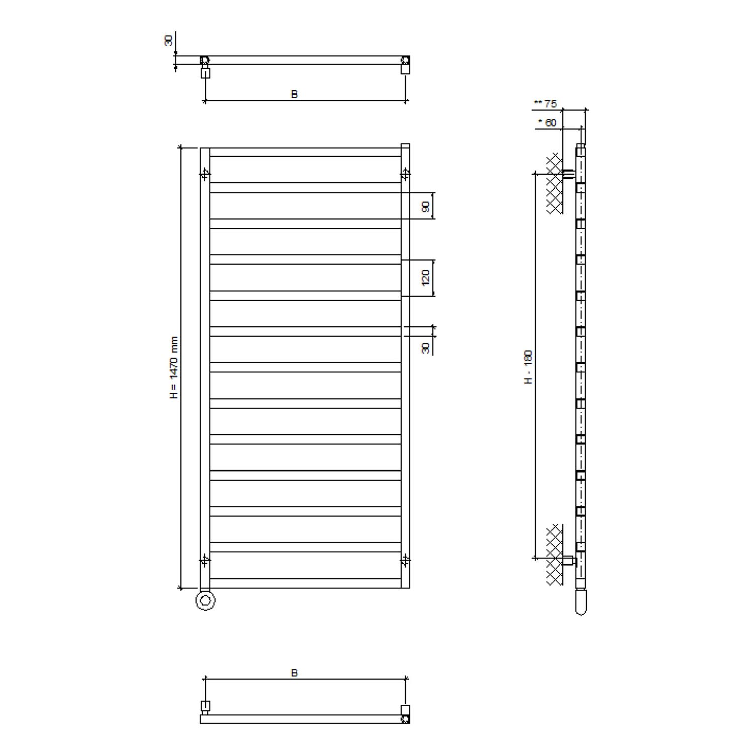 Quara E Badheizkörper 50 x 147 cm, rein elektrisch, Heizstab Typ 4 links mit Fernbedienung