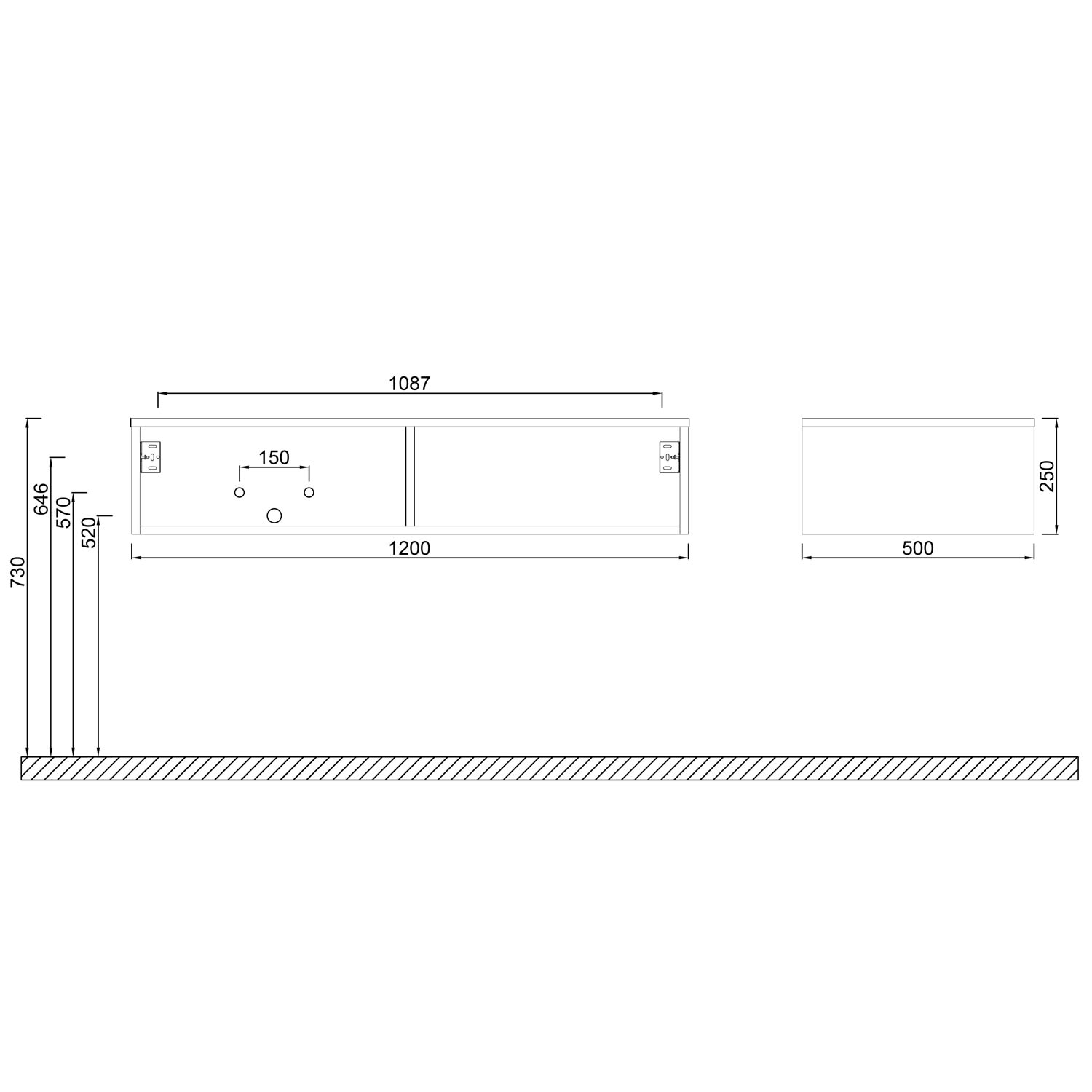 Art Waschtischkonsole 120 cm mit 2 Auszügen