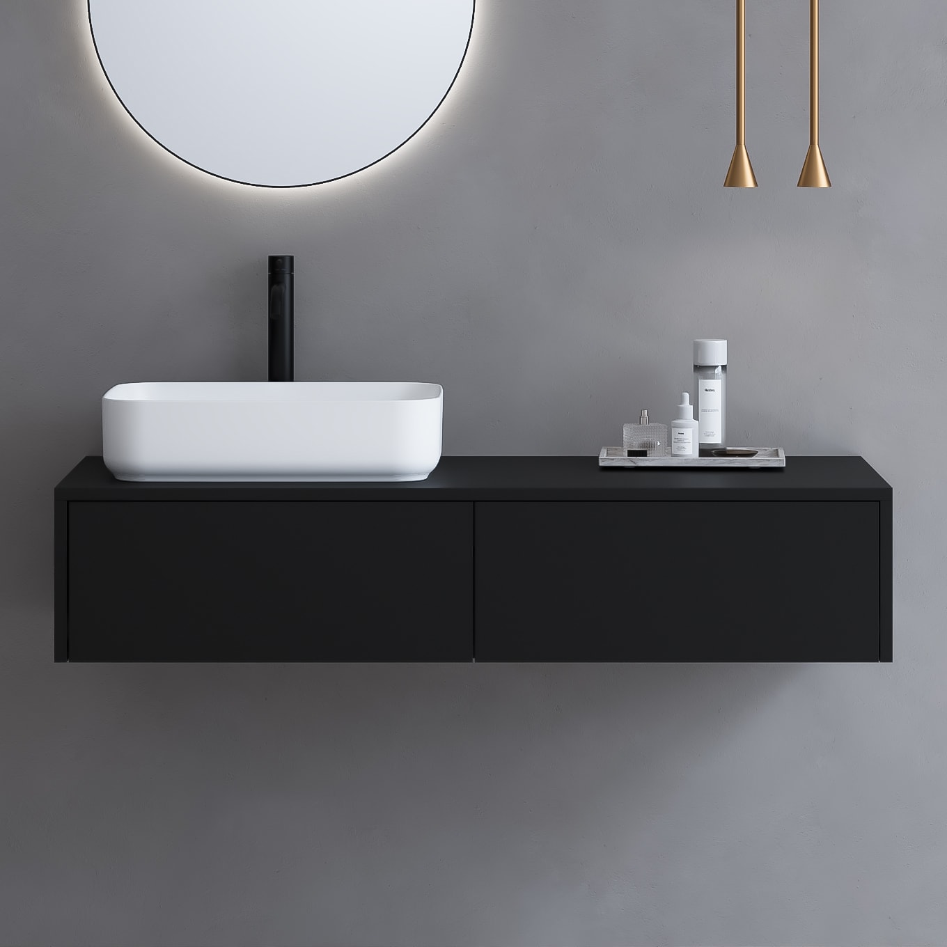 Bestes Design muss nicht teuer sein. Art Badmöbel zeichnen sich durch ihre grifflose Front aus - minimalistisch-modern und pflegeleicht. Drei attraktive Farbvarianten stehen zur Wahl: matt-schwarz, matt-weiß und amalfi holz dekor.