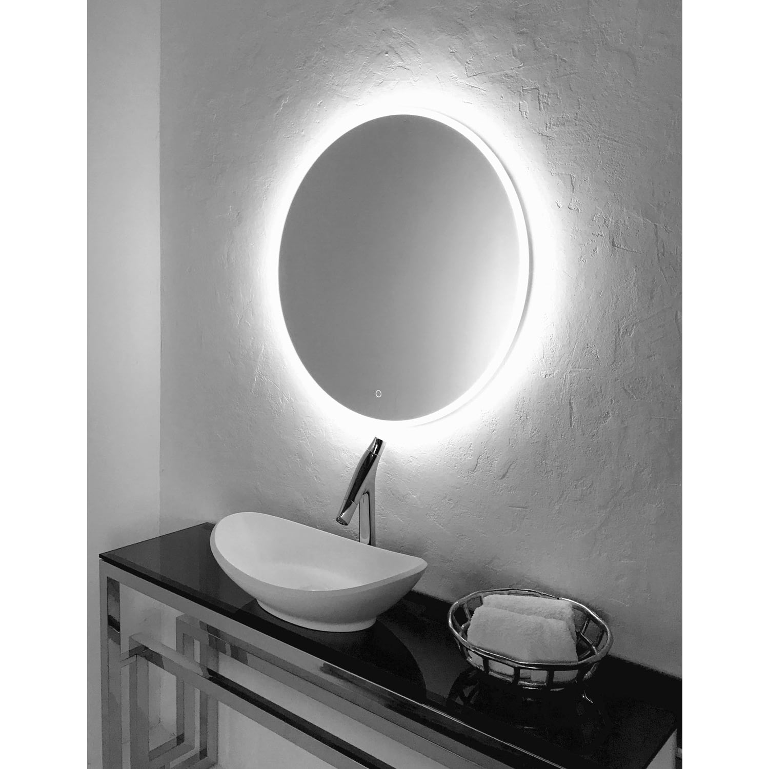 Art LED-Badspiegel Ø 80 cm von Megabad Profi Collection mit beleuchtetem Rand