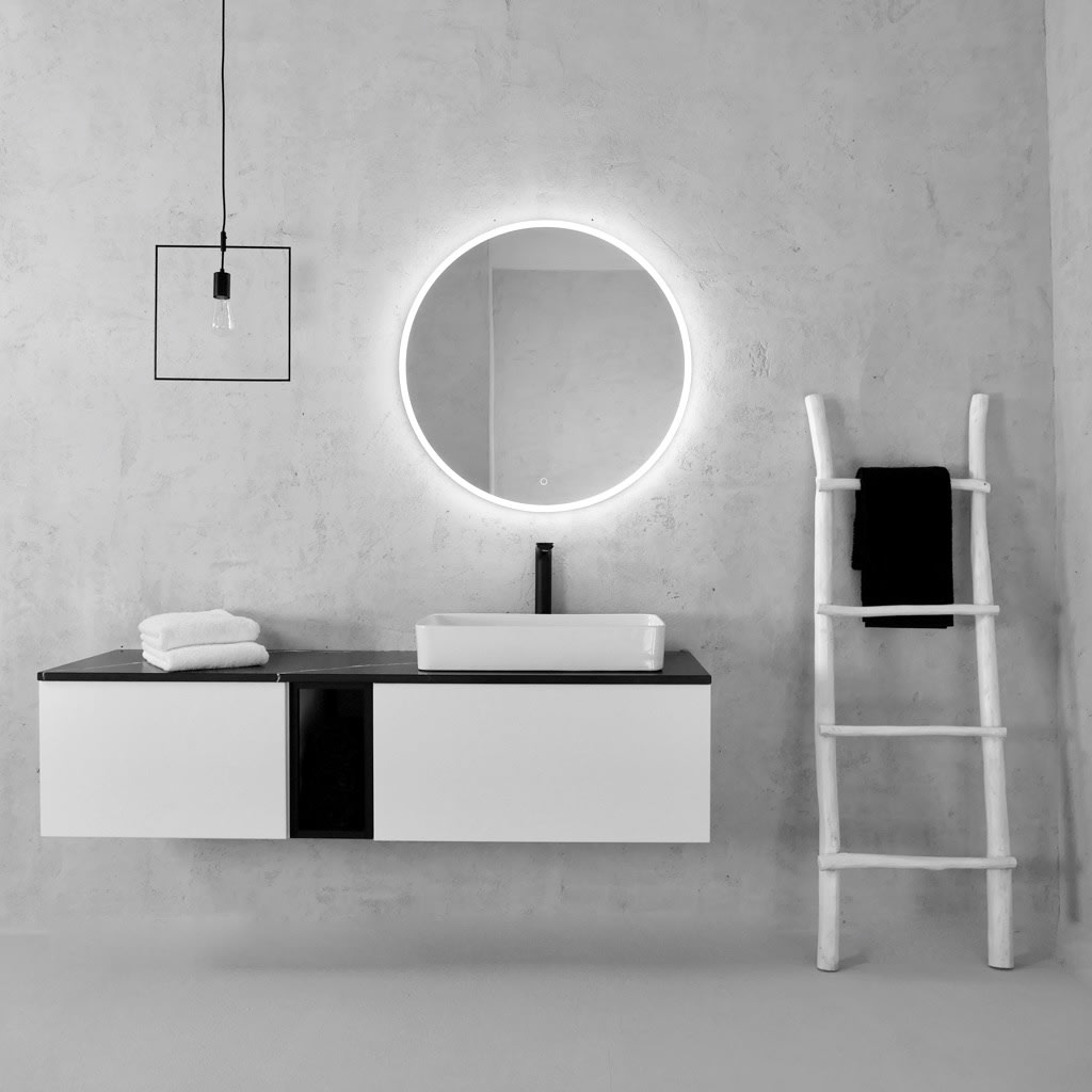 Diese kreisrunden Badspiegel stellen die optimale Ergänzung zu jedem Art Waschplatz dar. Die LED-Beleuchtung ist effizient und sparsam. Besonders faszinierend ist die atmosphärische Ambientebeleuchtung dieser Modelle. Die Heizfolie verhindert ein Beschlagen des Spiegels.