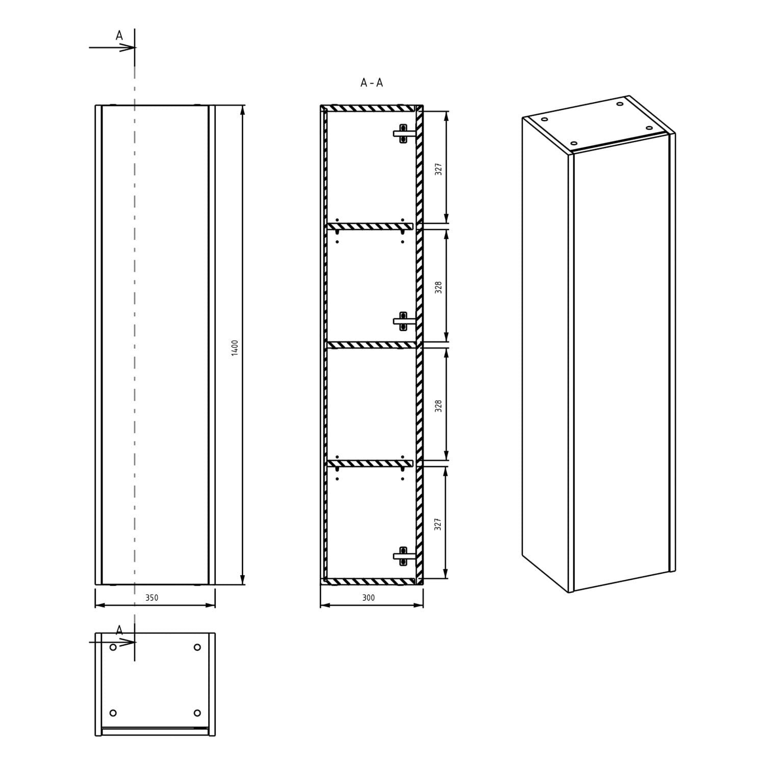 Art Hochschrank 35 x 140 cm mit 1 Tür