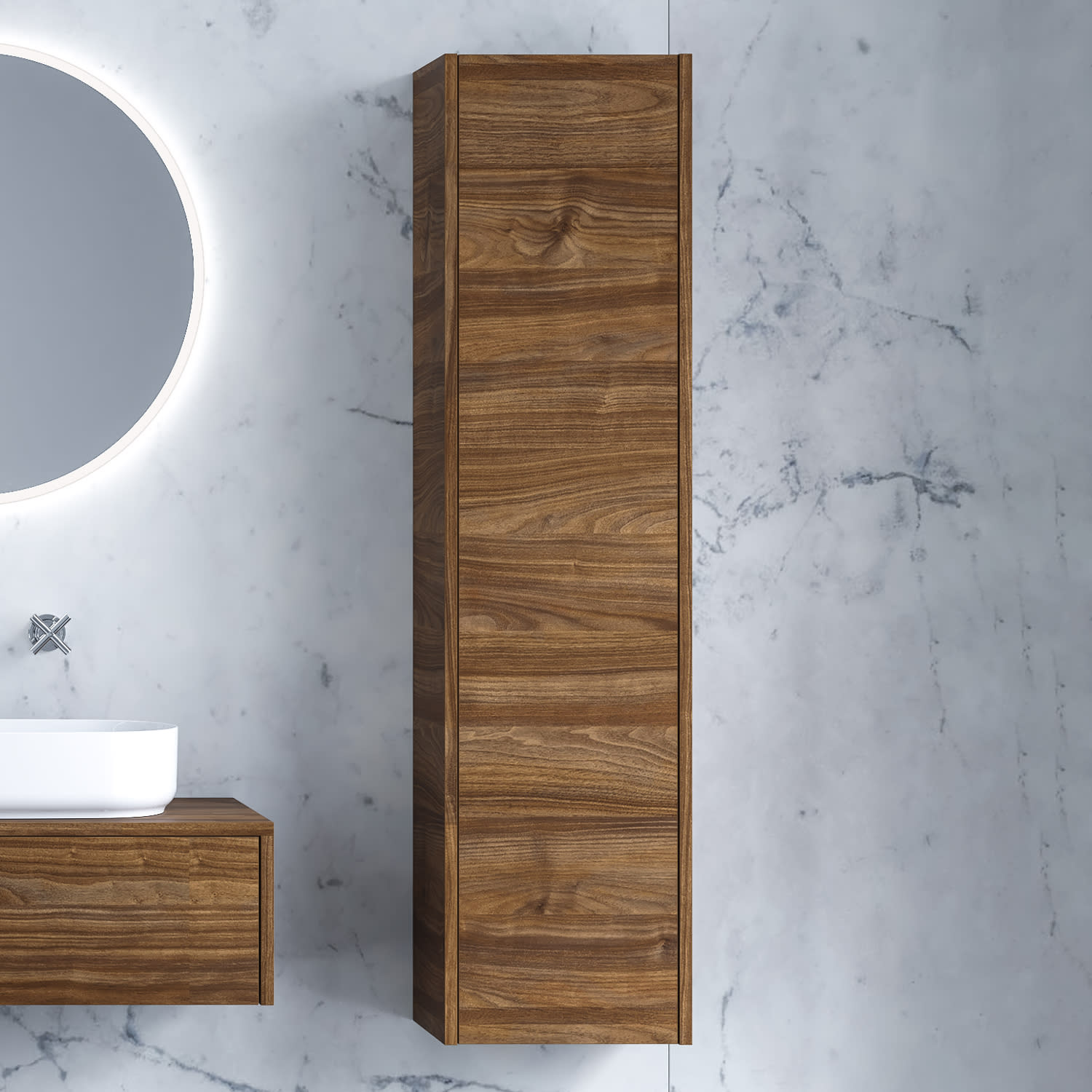 progettobagno Evo 54 Walnuss Vision Hochschrank 30 x 160 cm, Türanschlag links