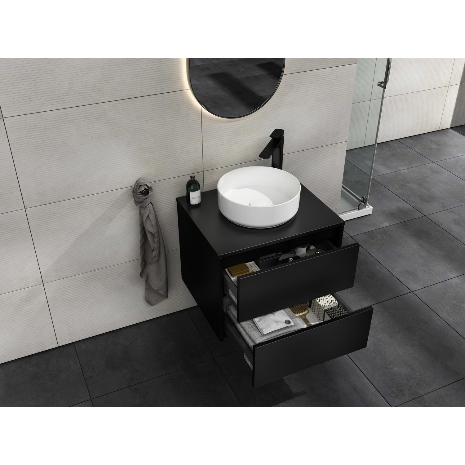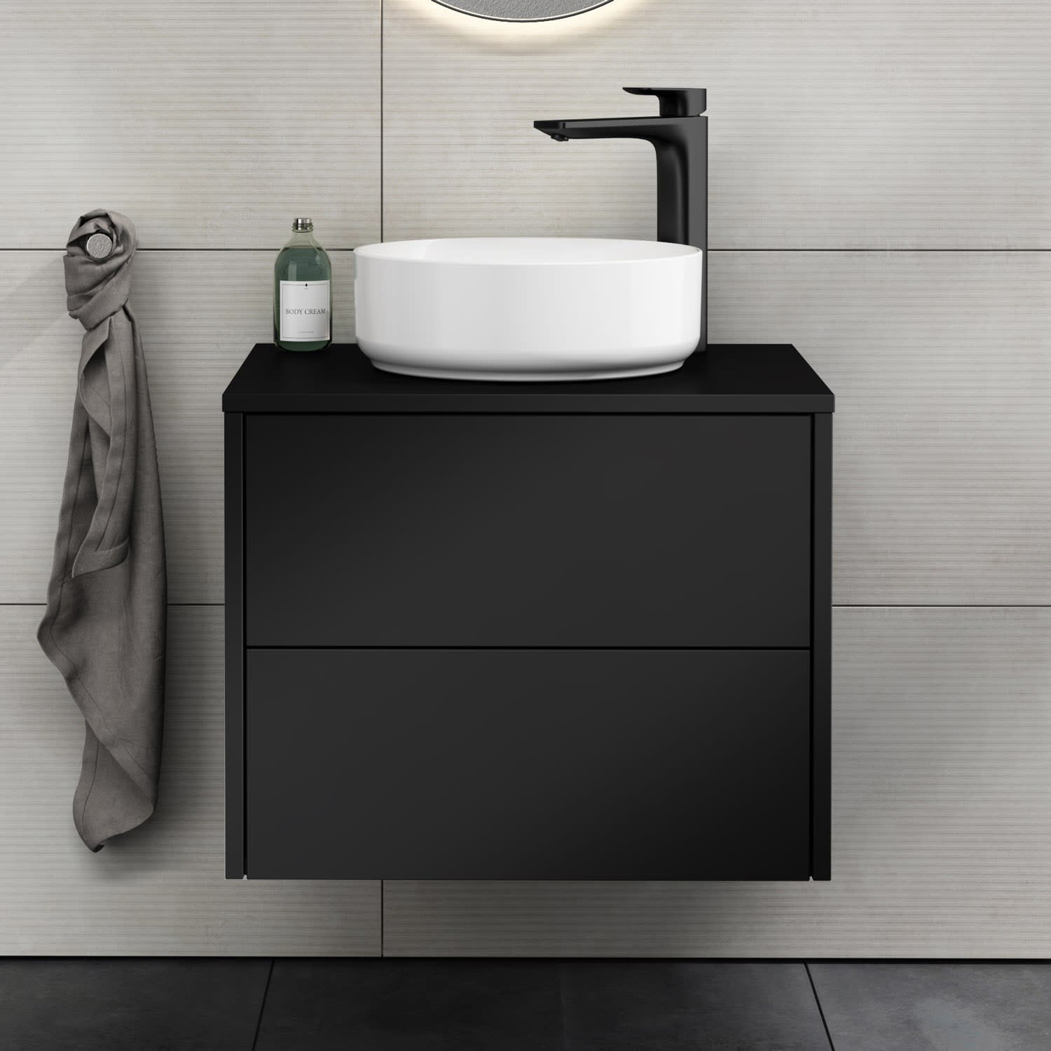 - Aufsatzwaschtisch und Armatur sind nicht im Lieferumfang enthalten.