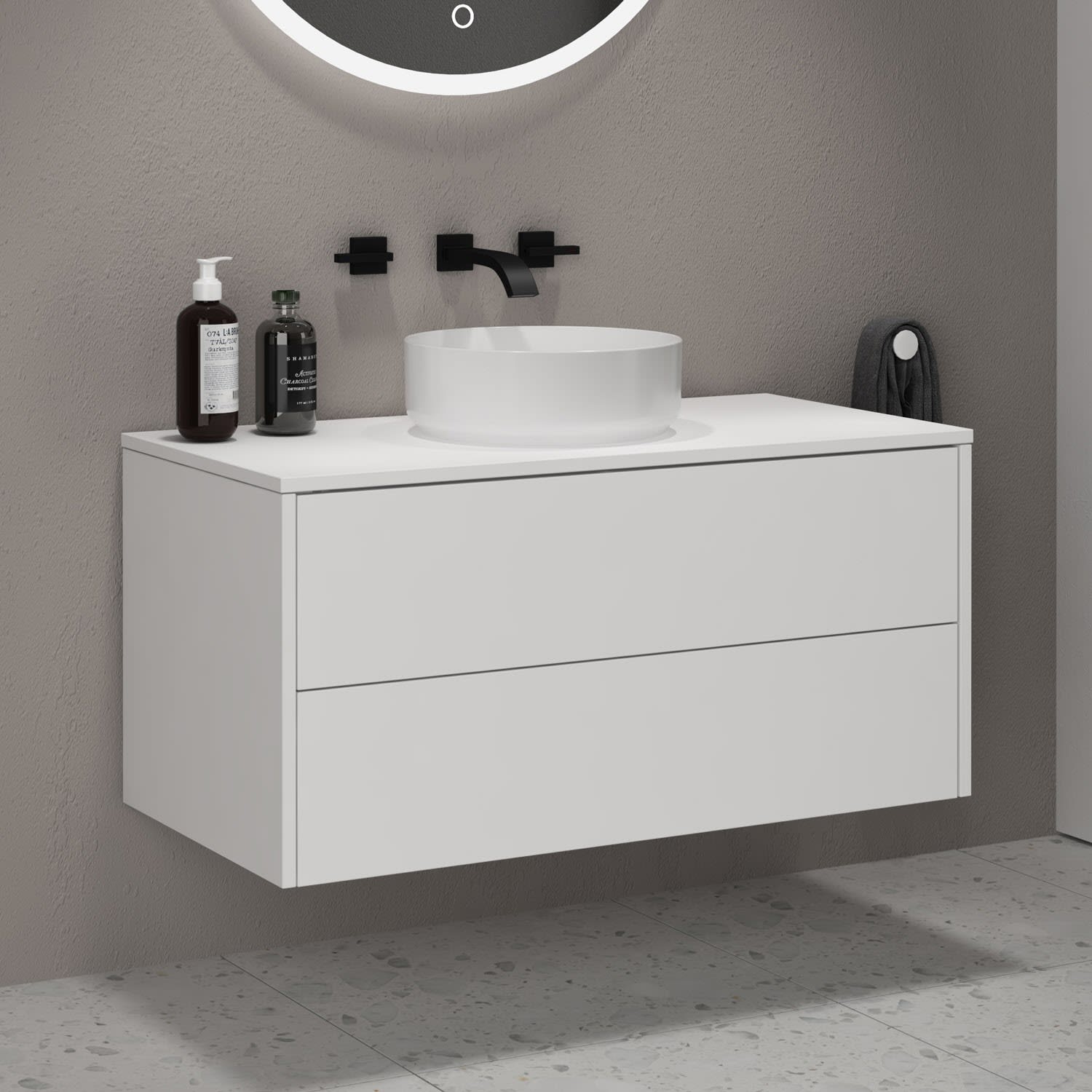 Bestes Design muss nicht teuer sein. Art Badmöbel zeichnen sich durch ihre grifflose Front aus - minimalistisch-modern und pflegeleicht. Drei attraktive Farbvarianten stehen zur Wahl: matt-schwarz, matt-weiß und amalfi holz dekor.