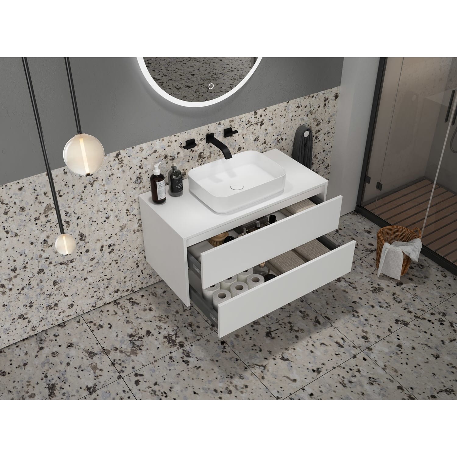 - Aufsatzwaschtisch und Armatur sind nicht im Lieferumfang enthalten.