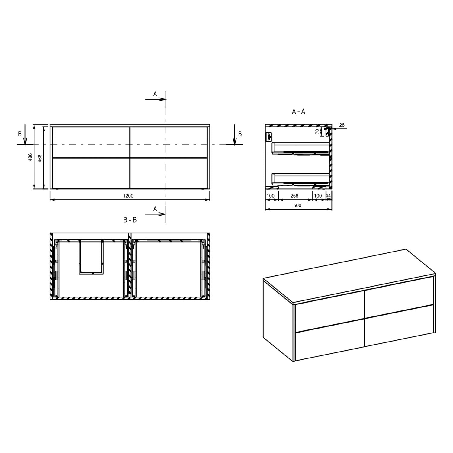 Art Waschtischkonsole 120 cm mit 4 Auszügen