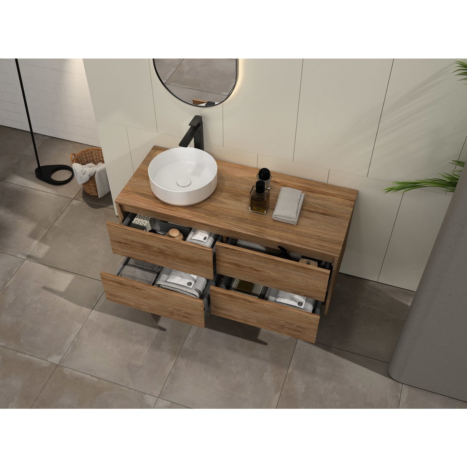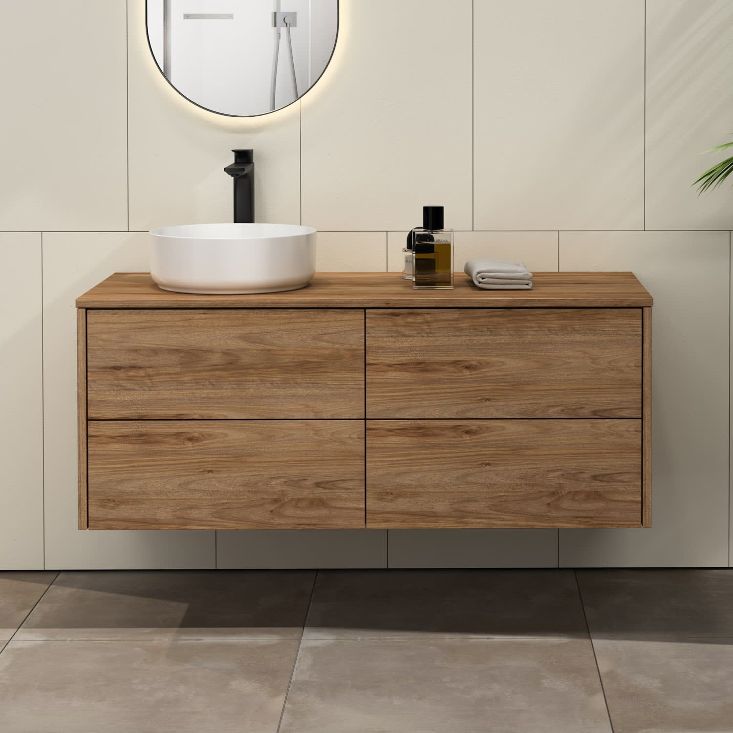 Bestes Design muss nicht teuer sein. Art Badmöbel zeichnen sich durch ihre grifflose Front aus - minimalistisch-modern und pflegeleicht. Drei attraktive Farbvarianten stehen zur Wahl: matt-schwarz, matt-weiß und amalfi holz dekor.