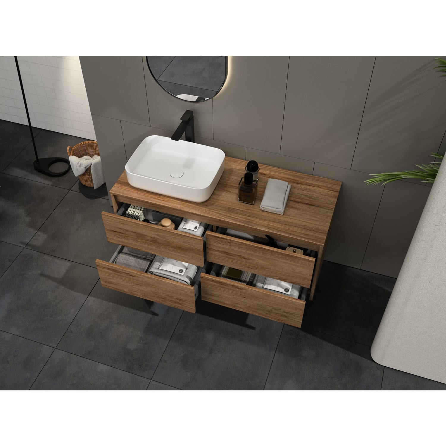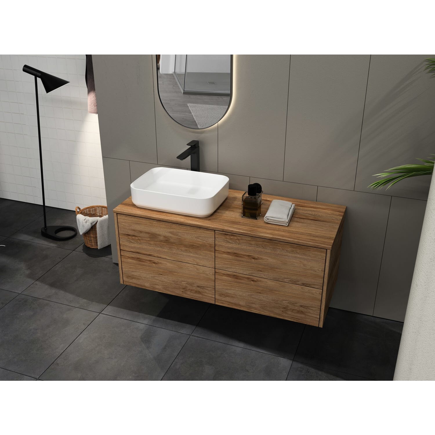 - Aufsatzwaschtisch und Armatur sind nicht im Lieferumfang enthalten.
