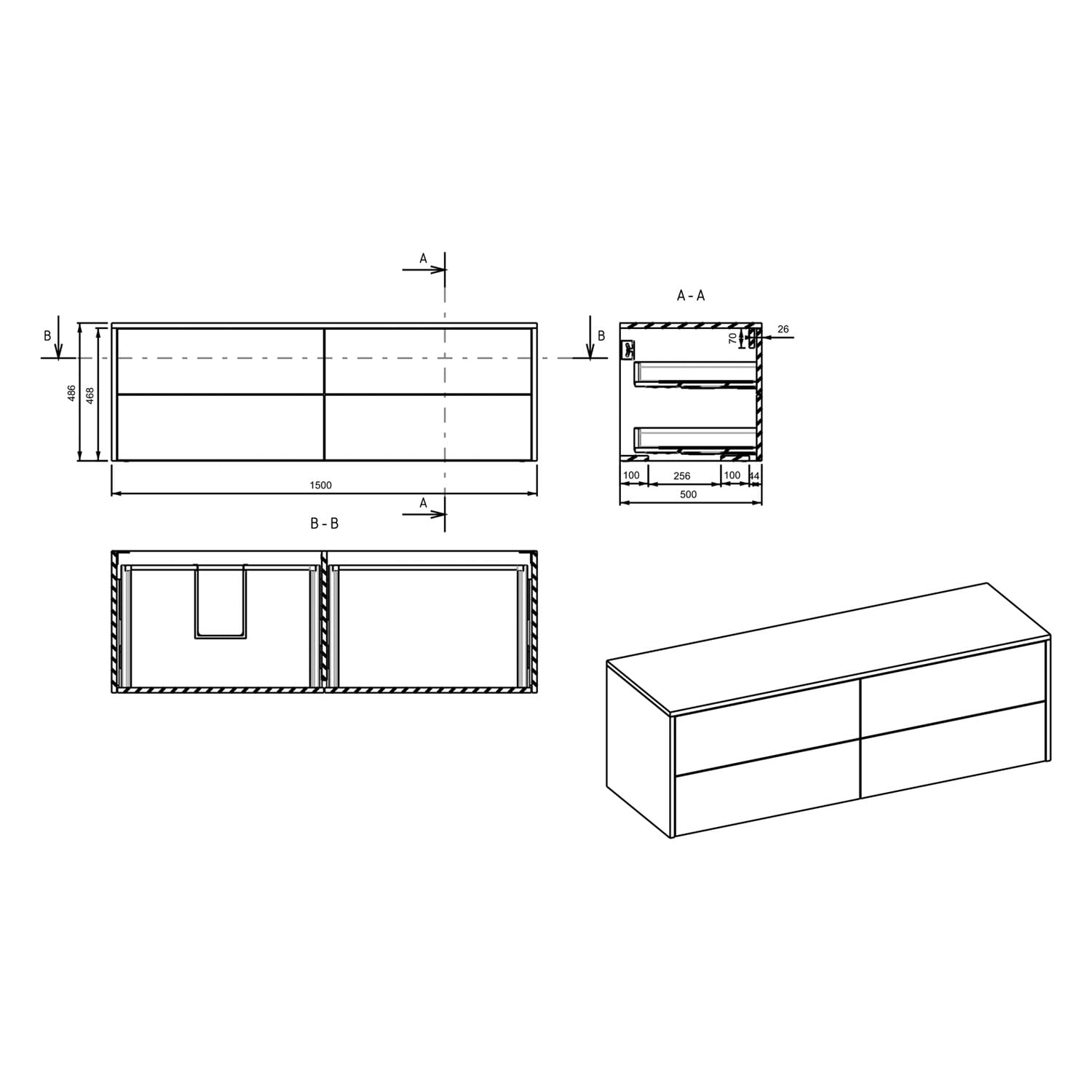Art Waschtischkonsole 150 cm mit 4 Auszügen