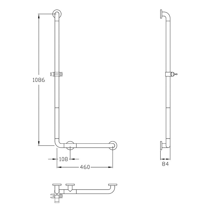 Silver Age System Winkelgriff 46 x 108,6 cm, mit Brausehalter