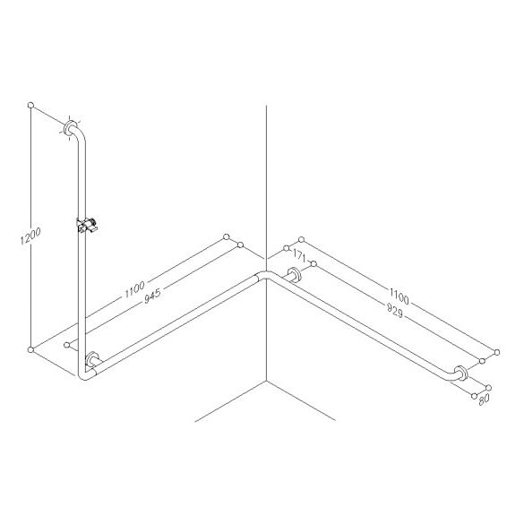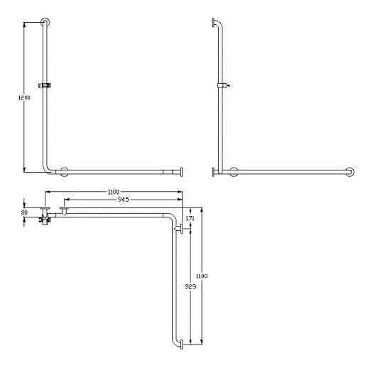 Silver Age System Duschhandlauf 110 x 110 x 120 cm, mit Brausestange links