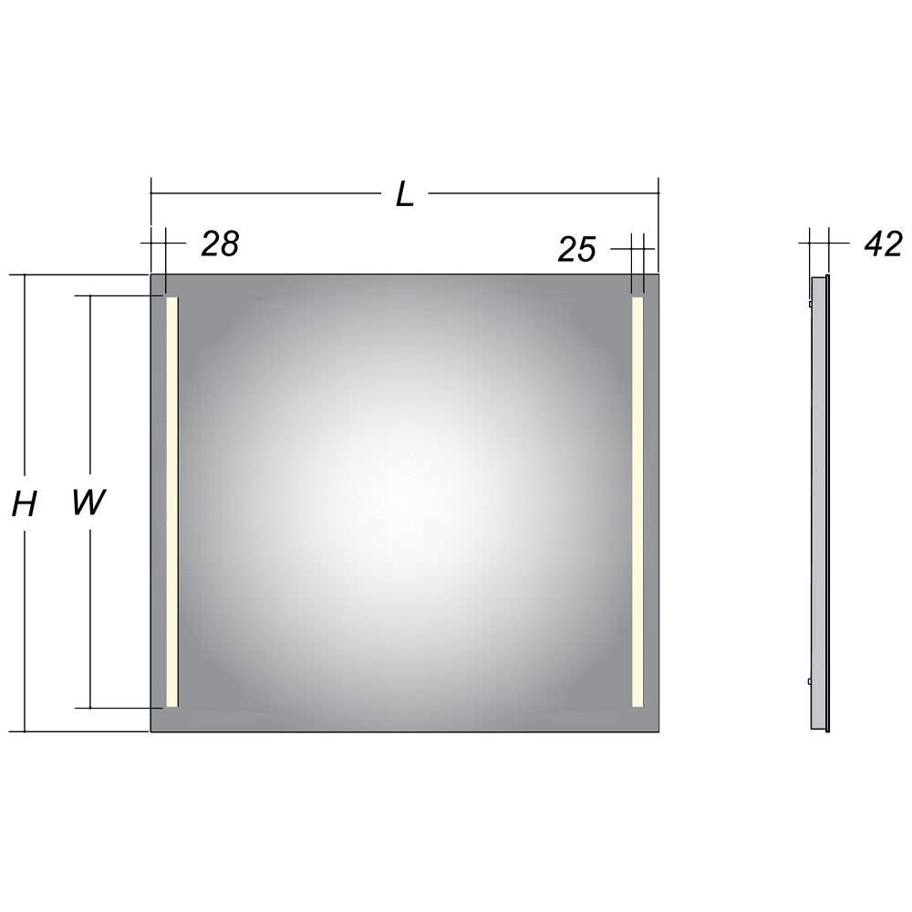 - mit in die Spiegelfläche integrierten Touch-Schaltern für an/aus, Dimmfunktion und Antibeschlag