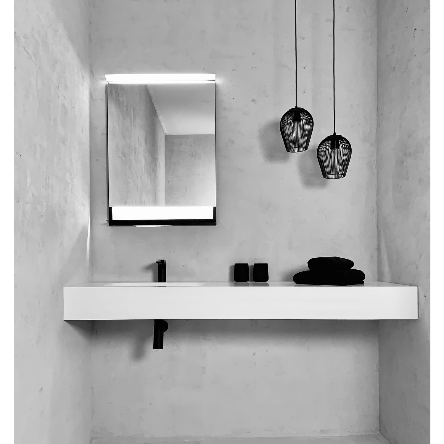 - Designorientierter Spiegel mit Ablage und Ambientebeuleuchtung