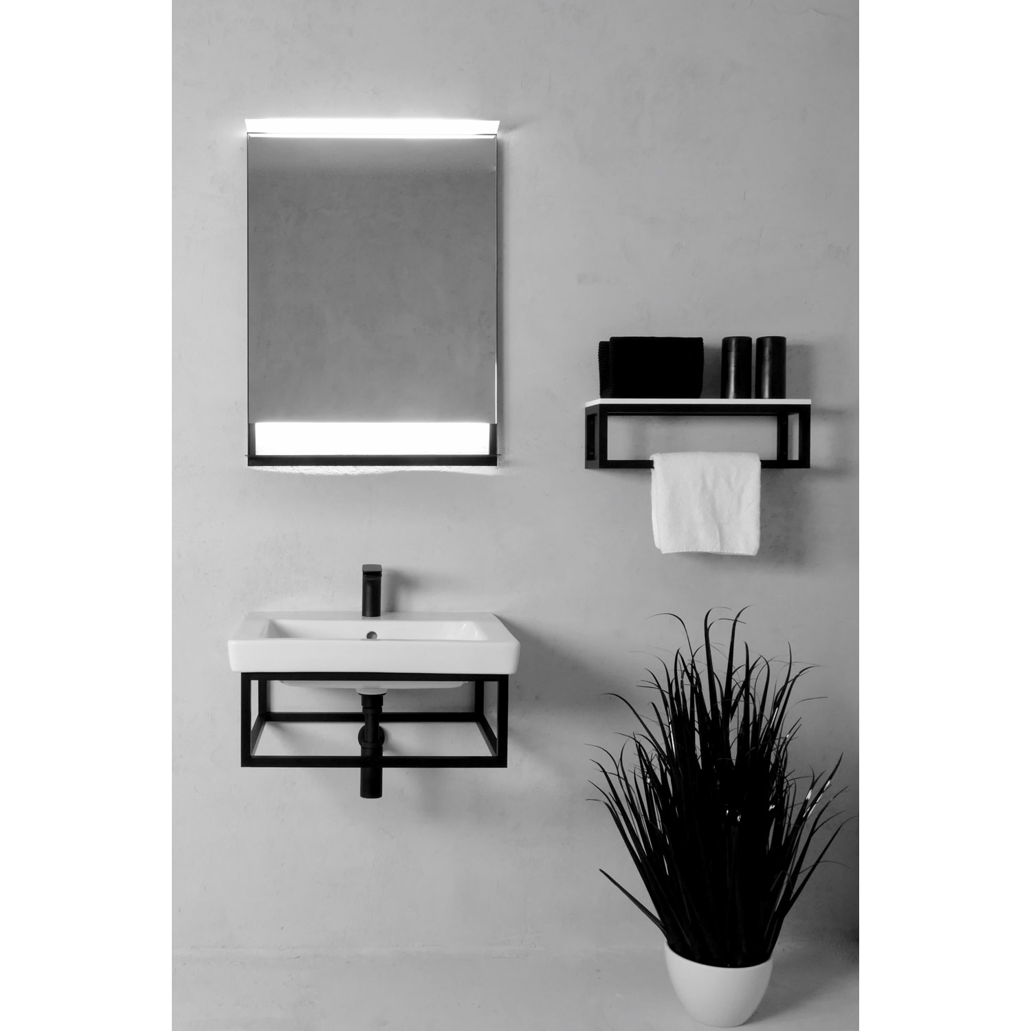 Megabad Profi Collection L3S1 Badspiegel 60 x 80 cm mit beleuchteter Ablage und LED-Beleuchtung