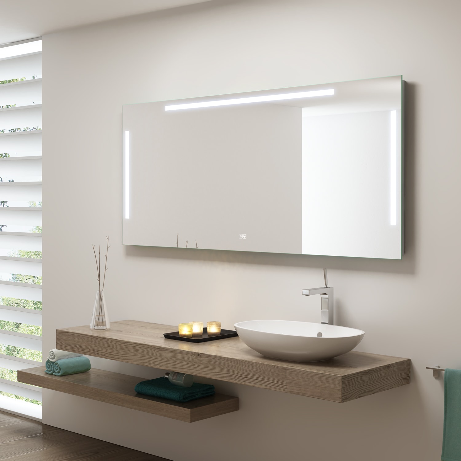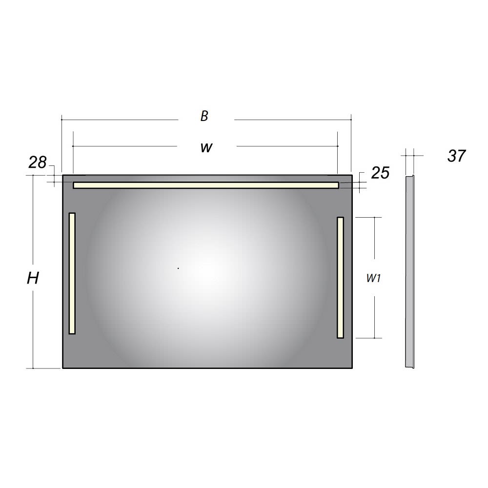 - mit in die Spiegelfläche integrierten Touch-Schaltern für an/aus, Dimmfunktion und Antibeschlag