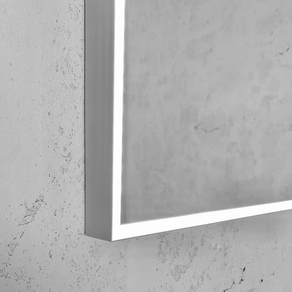 Ein klares und schnörkeloses Design zeichnet diesen Spiegel aus. Puristisch und unaufdringlich setzt der Spiegel sich und sein Umfeld in Szene. Ein speziell entwickeltes Aluminium-Profil ermöglicht ein nach außen gesetztes filigranes Lichtband. Eine blendfreie und hocheffiziente Ausleuchtung bringt Nutzen und Optik in Einklang. Der umlaufende Aluminium-Rahmen schütz vor Verschmutzung und dient gleichzeitig als Sichtschutz der verbauten Technik.