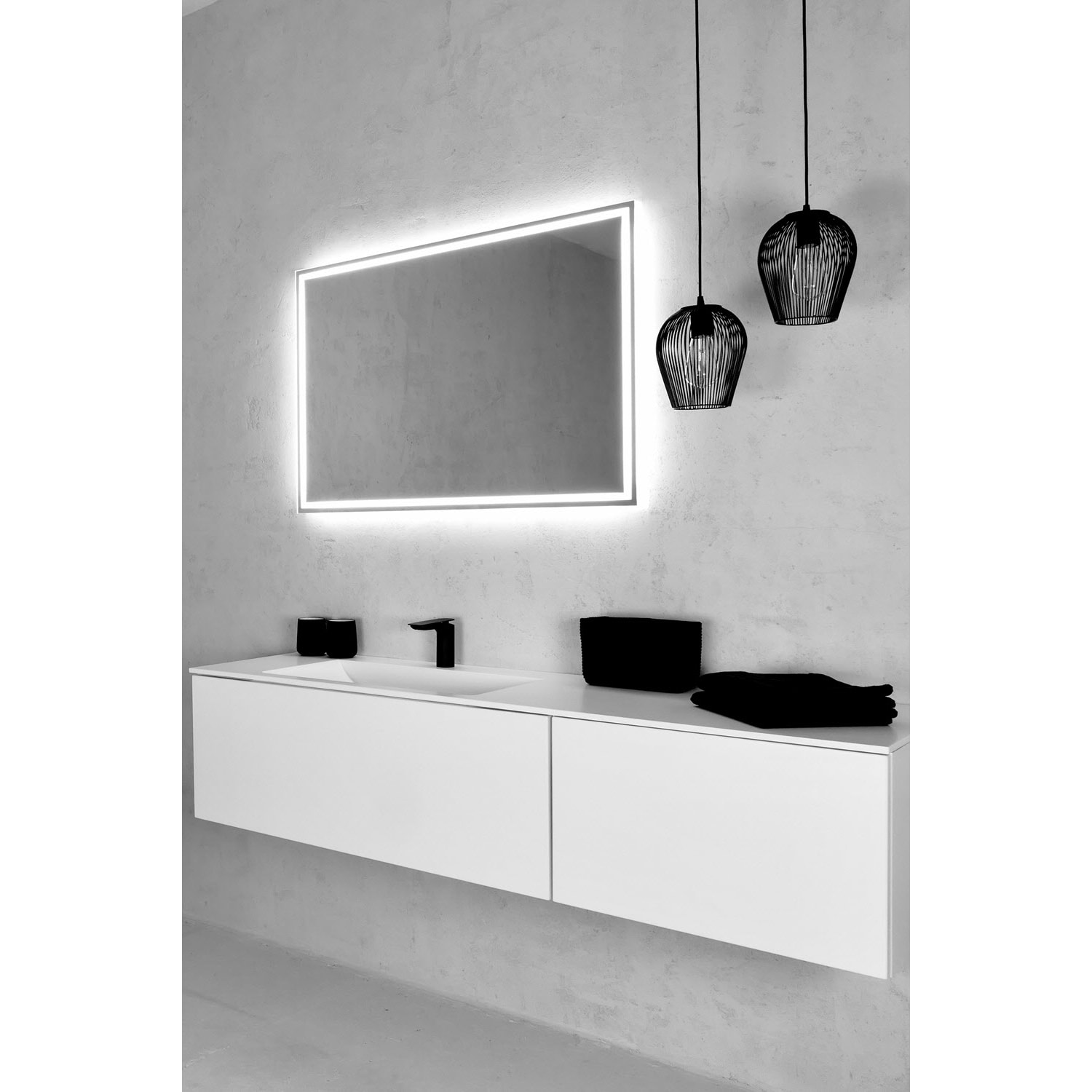 Das hocheffiziente LED-Licht sorgt für eine homogene, blendfreie Ausleuchtung und erzeugt zusätzlich eine wirkungsvolle Ambientebeleuchtung. Stylisch und unaufdringlich setzt der Spiegel sich und sein Umfeld in Szene.