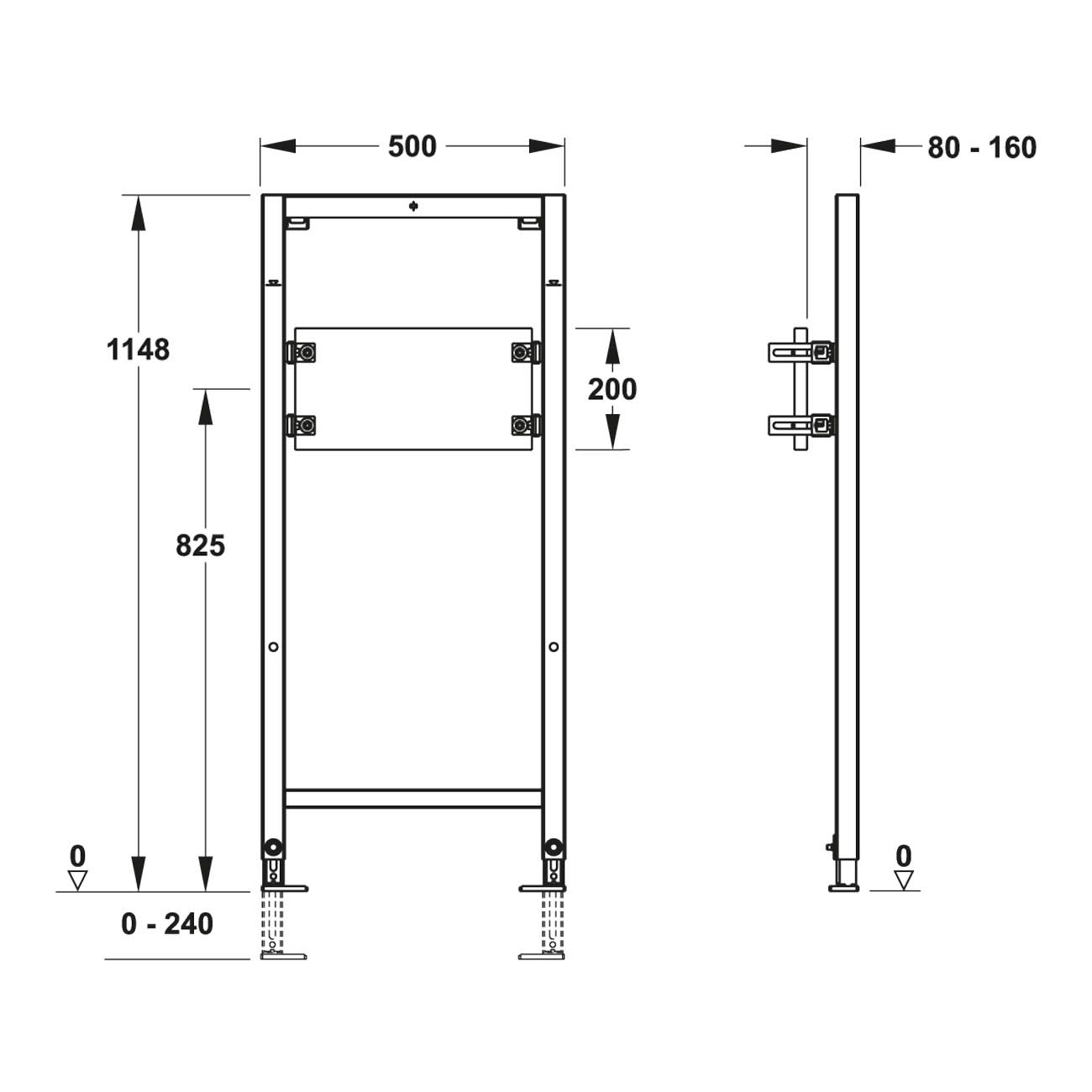 - Mittel- und Meterrissmarkierung zur exakten Ausrichtung der Achsmitte und Montagehöhe des Elementes