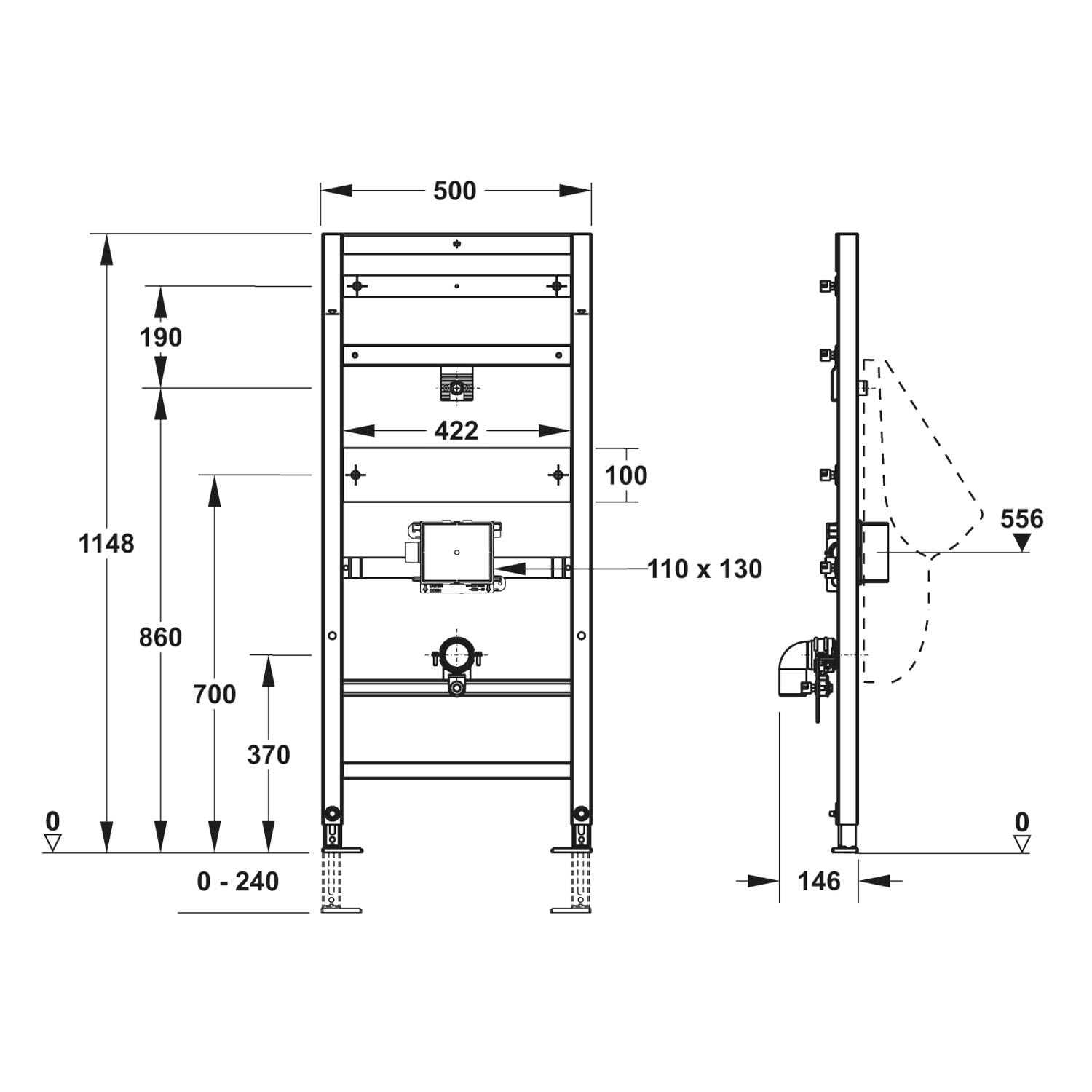 - vormontiertes Montageelement für Urinal mit verdecktem Zulauf von hinten