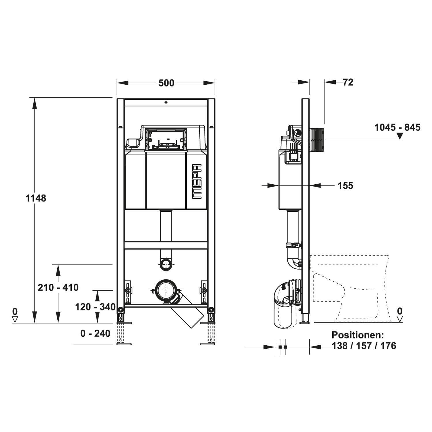 - Anschlüsse Zu - und Ablauf parallel stufenlos höhenverstellbar: