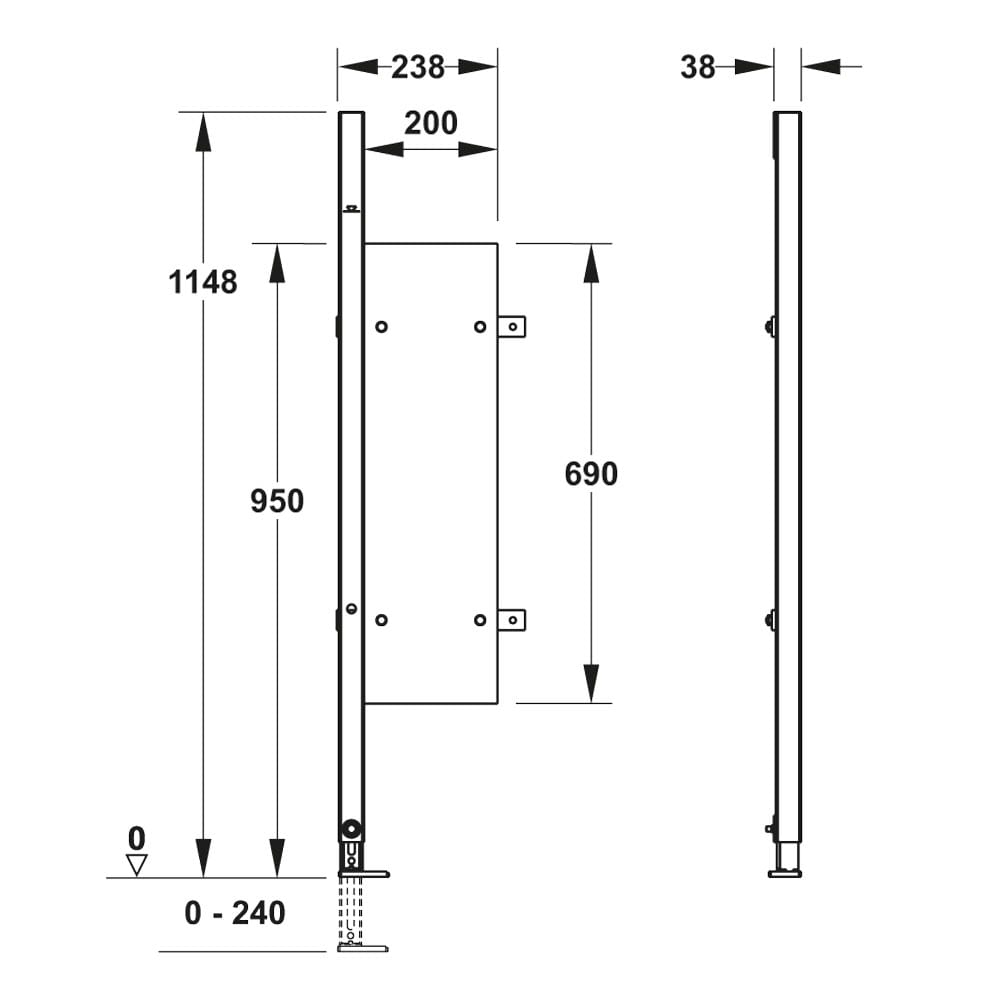 - höhenverstellbare Fußstütze 0 – 24 cm mit integrierter Rutschhemmung,Fußplatte drehbar, Bohrfehler ausgleichend,Tiefe passend zum Einbau in UW-Profil UW 50 und UW 75 und MEPA-C-Profil