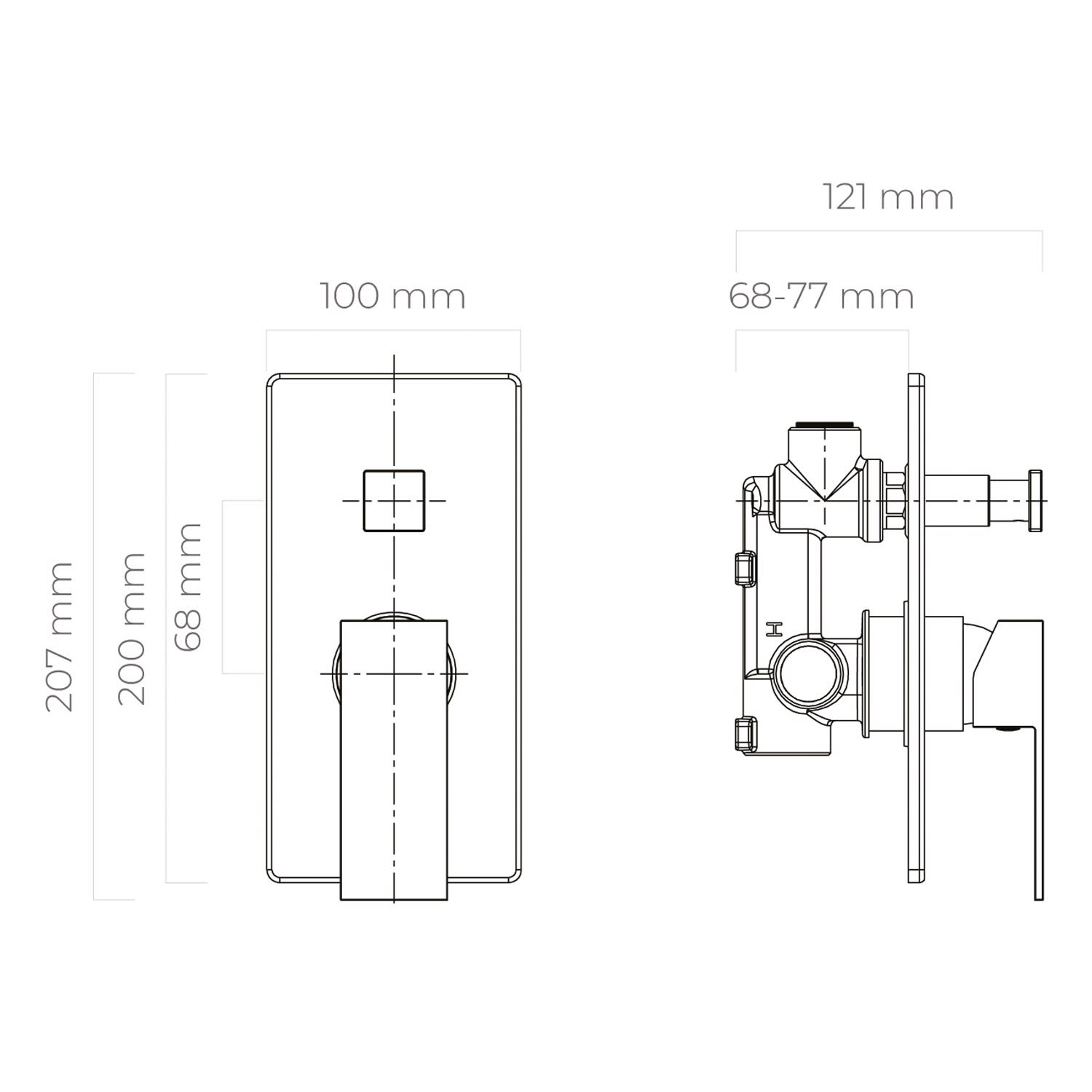 - Anschluss für Regendusche oder ¾-Zoll-Wannenauslauf
