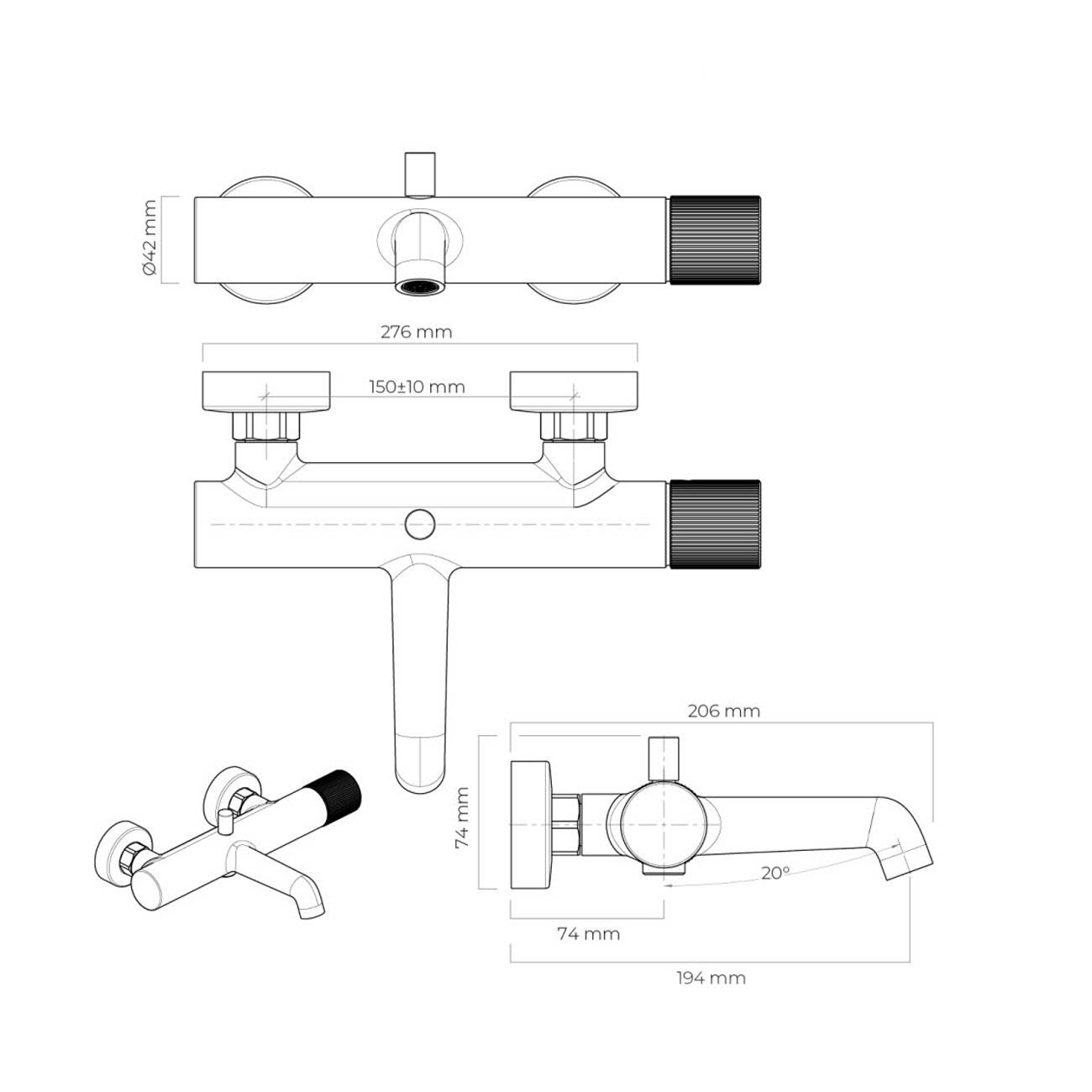 OLTENS Hamnes Aufputz-Wannenarmatur mit Brauseanschluss