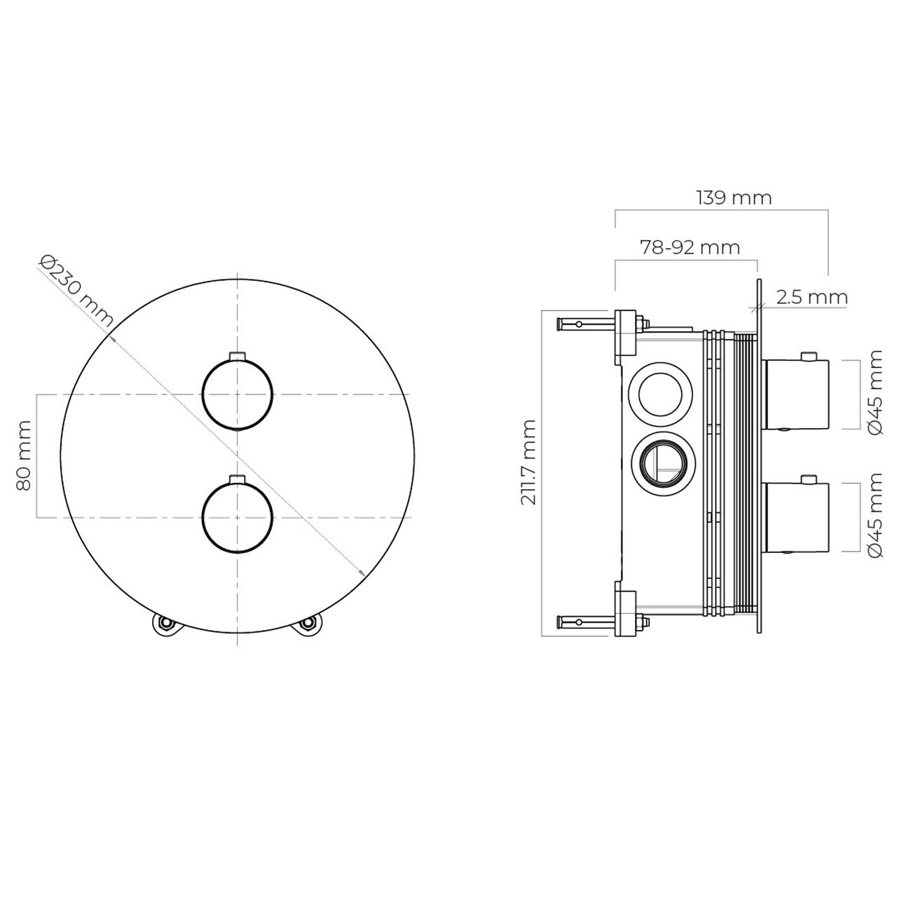 - zwei Wassereinlässe 3/4" für Warm- und Kaltwasser